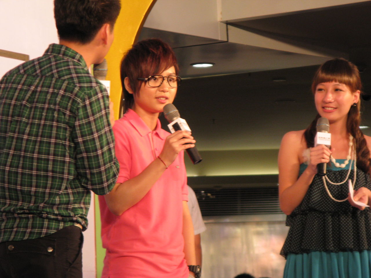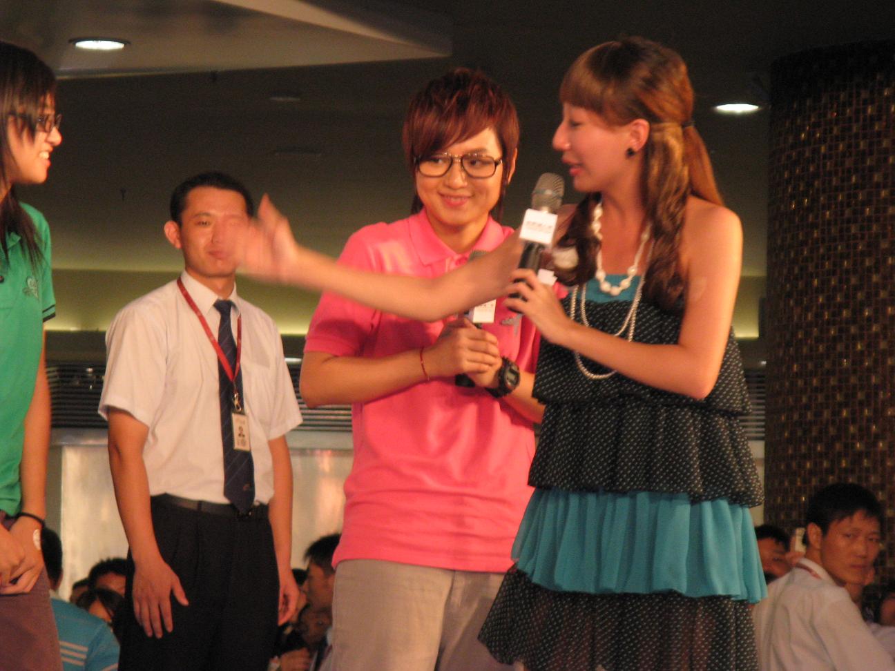 19楼,嘿嘿,活动结束,我上前跟主持人mm说谢谢了!