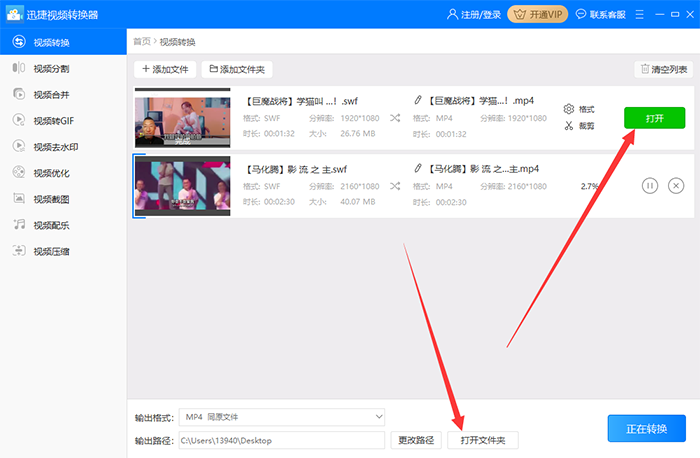 6、转换完成后,在程序左下角找到转换后的文件保存目录,也可以右键单击列表中的文件打开文件保存目录。
