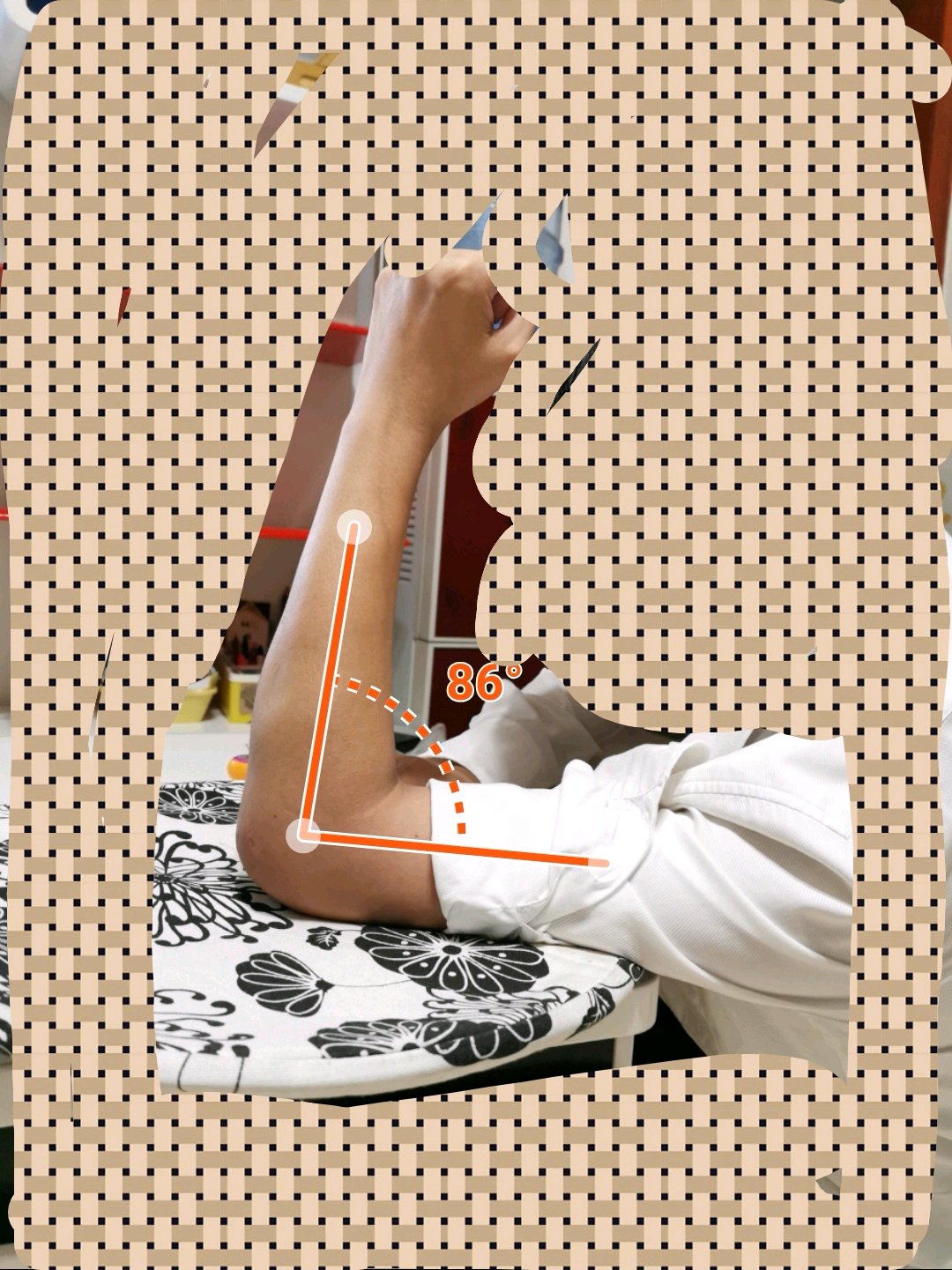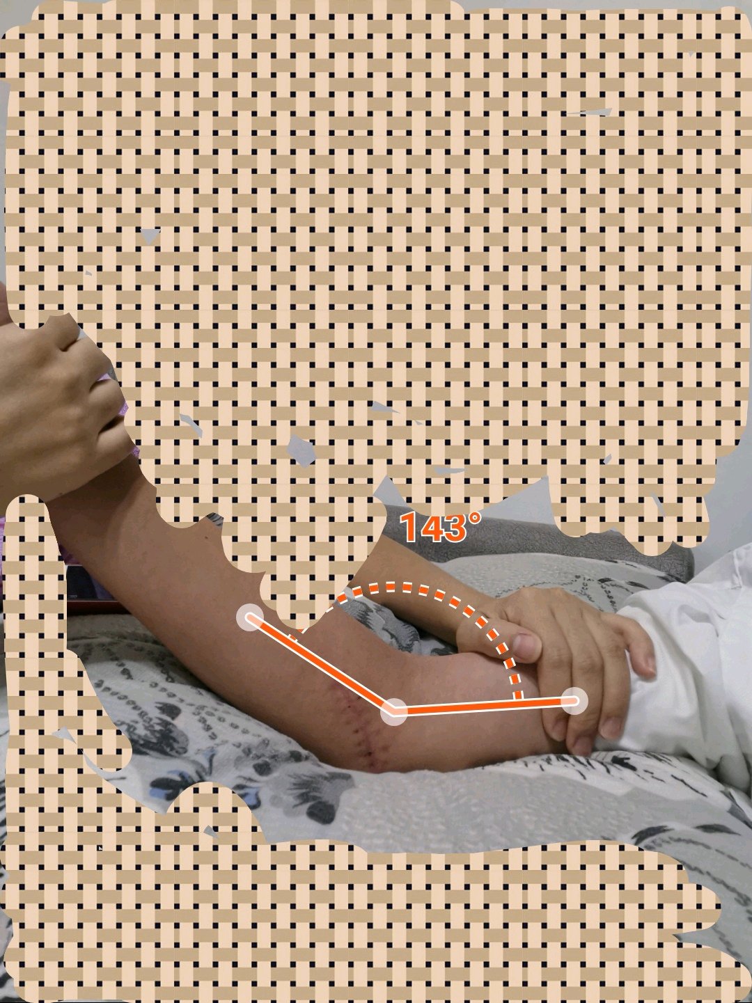 11月8日拆石膏,手肘不能屈伸,活动幅度不超过10度。