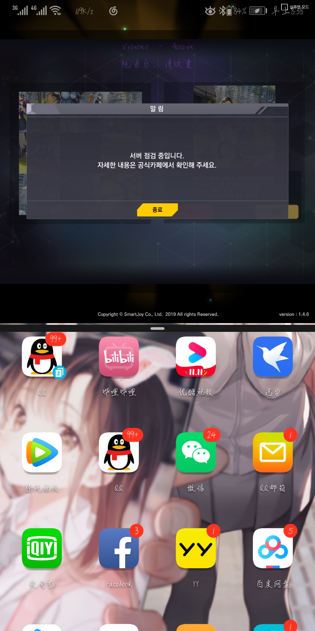 各位大佬这是咋回事 我这是从韩国one store下载的1.4.6最新版本 这是在维护还是咋回事儿