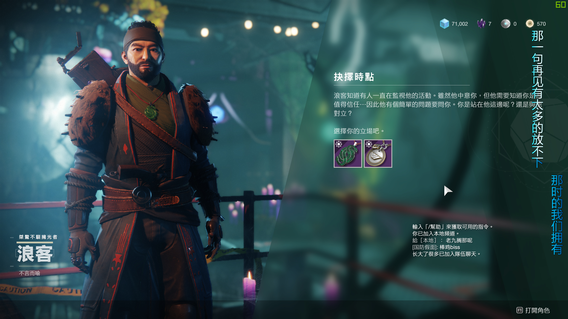 其实选哪个都差不多,先锋和浪客都要pvp,而且做完了没什么奖励,两个我都选过,不过我更倾向浪客,每次浪客给我异域的时候,我就会想起我在浪客房间里面装窃听器,总感觉有丶对不起浪客
