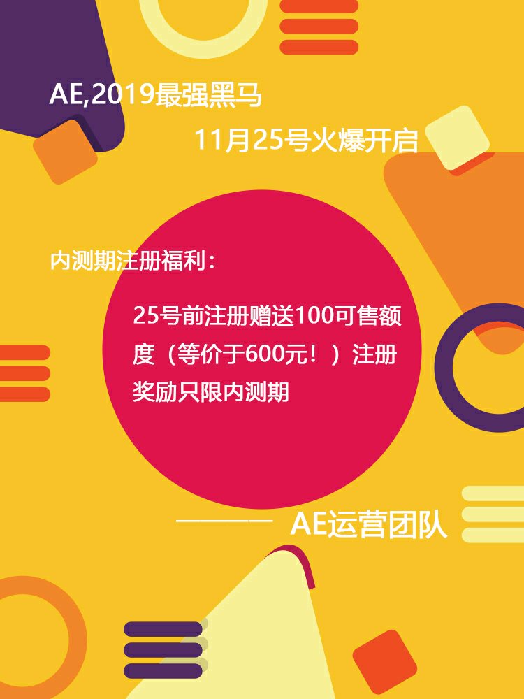 AE,即将火爆全场,确定不了解一下?前500名注册赠送100可售额度,价值600元