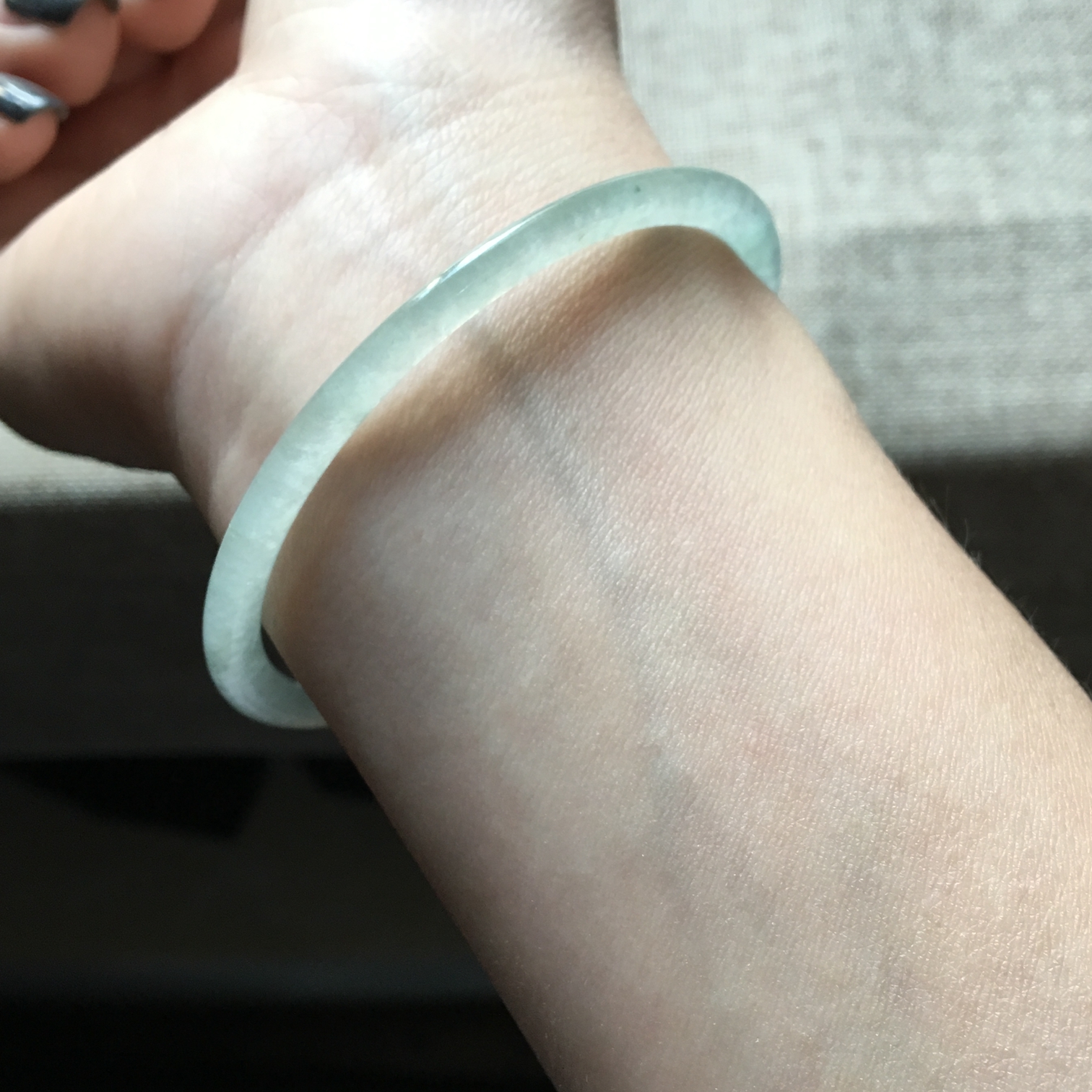 虽然这个图不是百分百的准确(因为还得考虑妹子手掌的软硬程度哈)但也总比乱猜的好哦,如果可以当然是去实体店试试,试到最适合自己的圈口,记住他,以后买手镯就方便许多了哦~