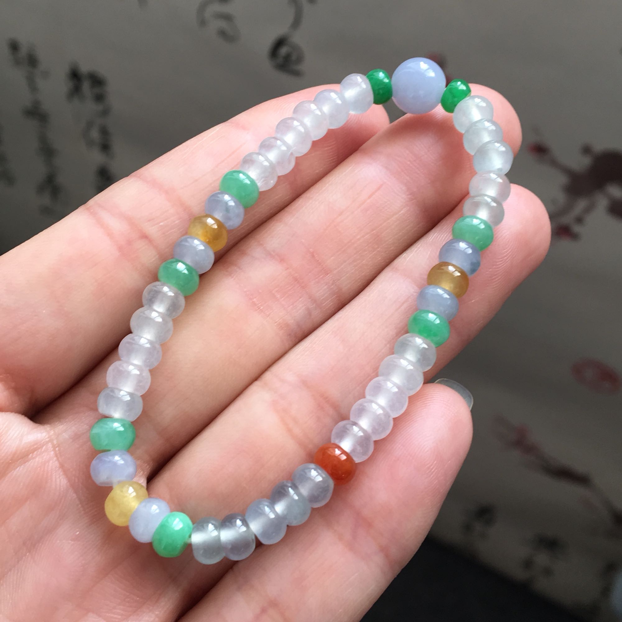 三彩算盘珠+紫圆珠手链