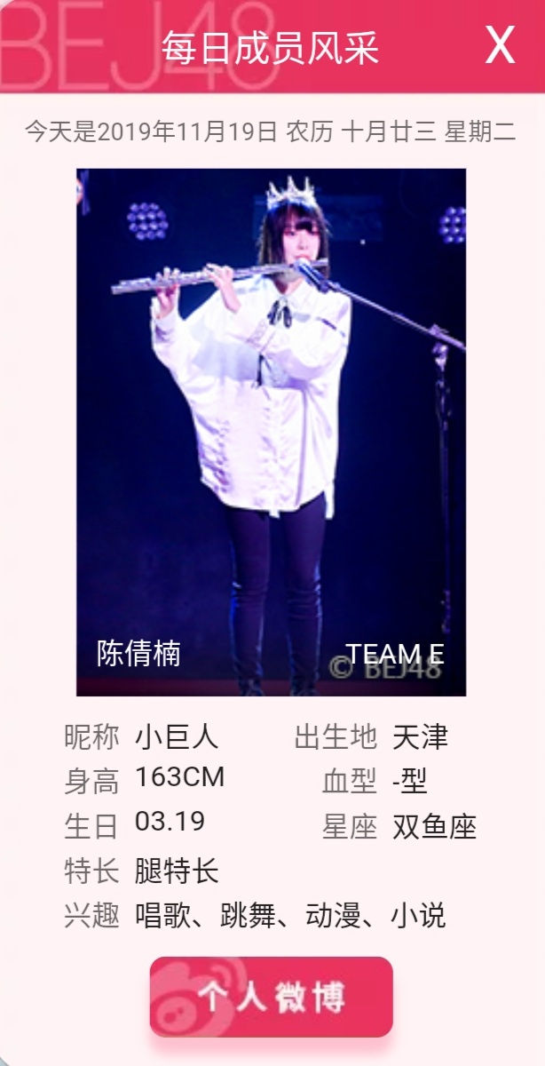 【官网】#每日一星# ——陈倩楠(2019年第323期)
