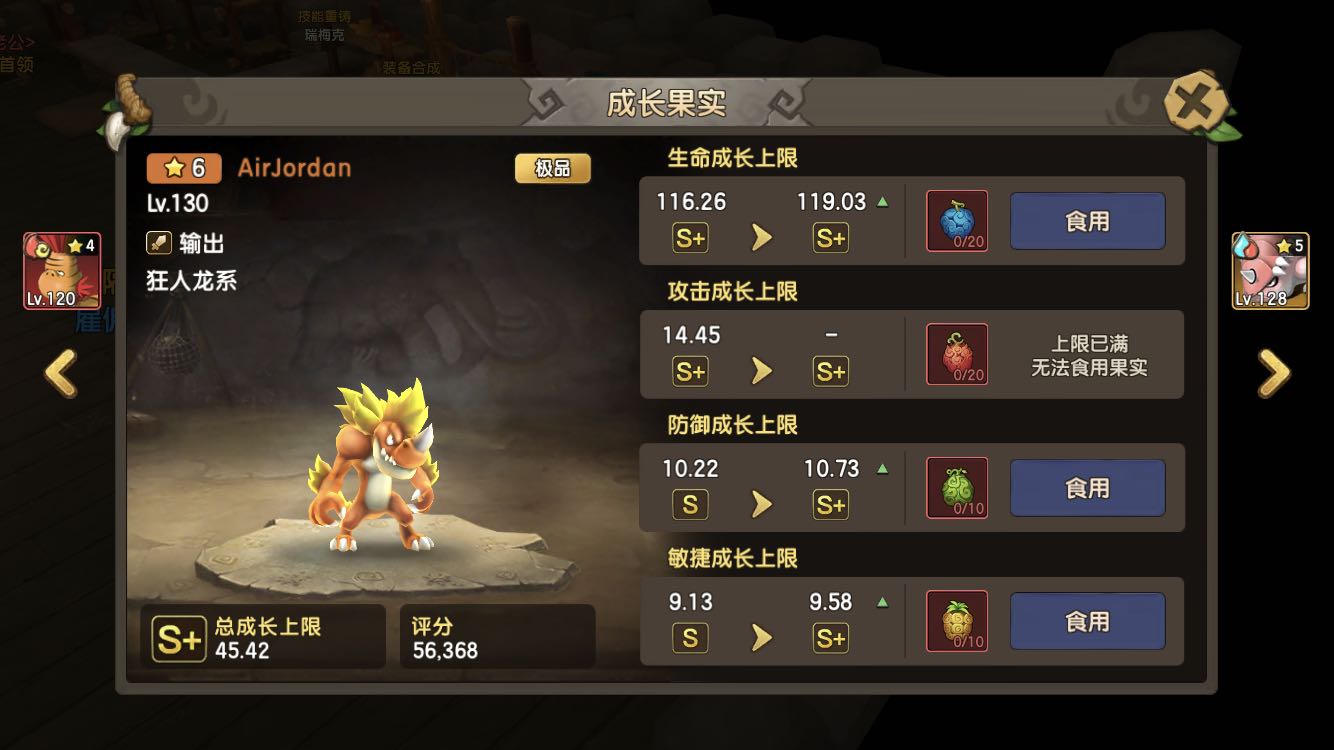 你自己看啊,吃一次果子提升0.5左右。S+可以再吃一次。你这只吃满果子的话,成长差不多47多。我水的狂人龙也是47多成长。