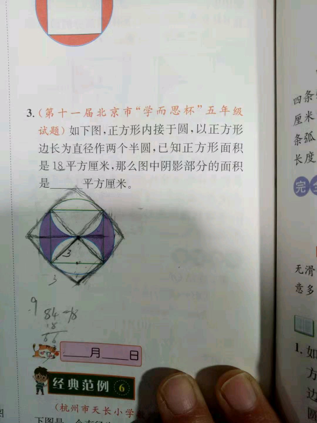 大圆面积需要用到勾股定理,但是孩子才 5年纪,没有学勾股定理