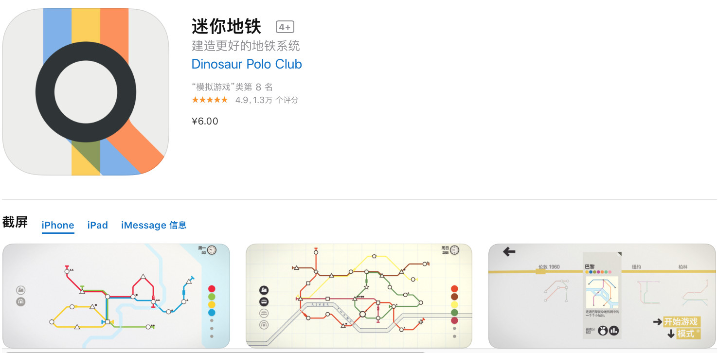 迷你地铁iOS |¥ 25 → 6