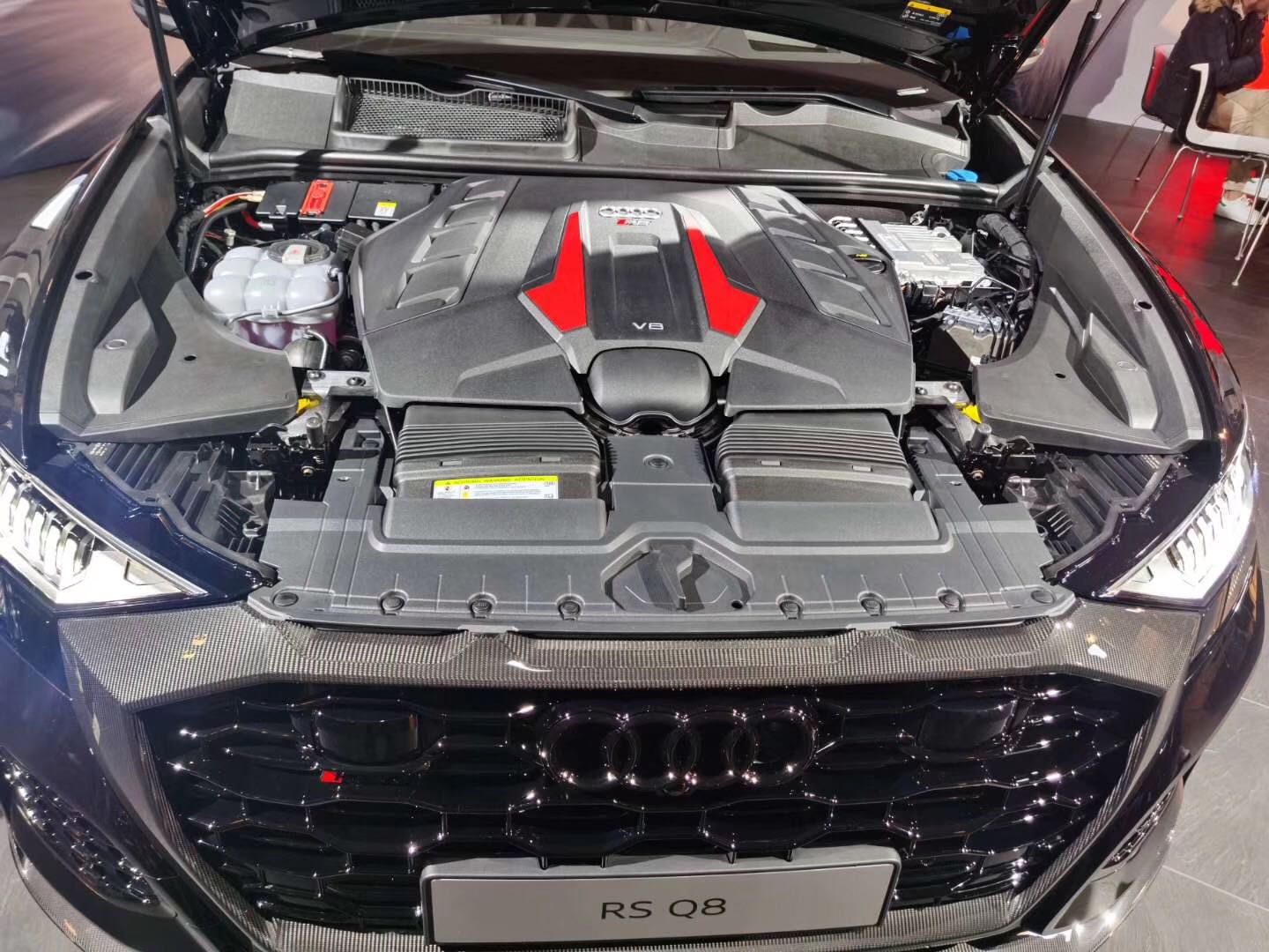 奥迪RS Q8搭载奥迪4.0L双涡轮增压引擎,最大功率600hp、最大扭矩800Nm,0-100 km/h加速3.8秒、0-200 km/h加速13.7秒,极速限定在250 km/h,选装动态包后可达305 km/h,车重2315 kg。