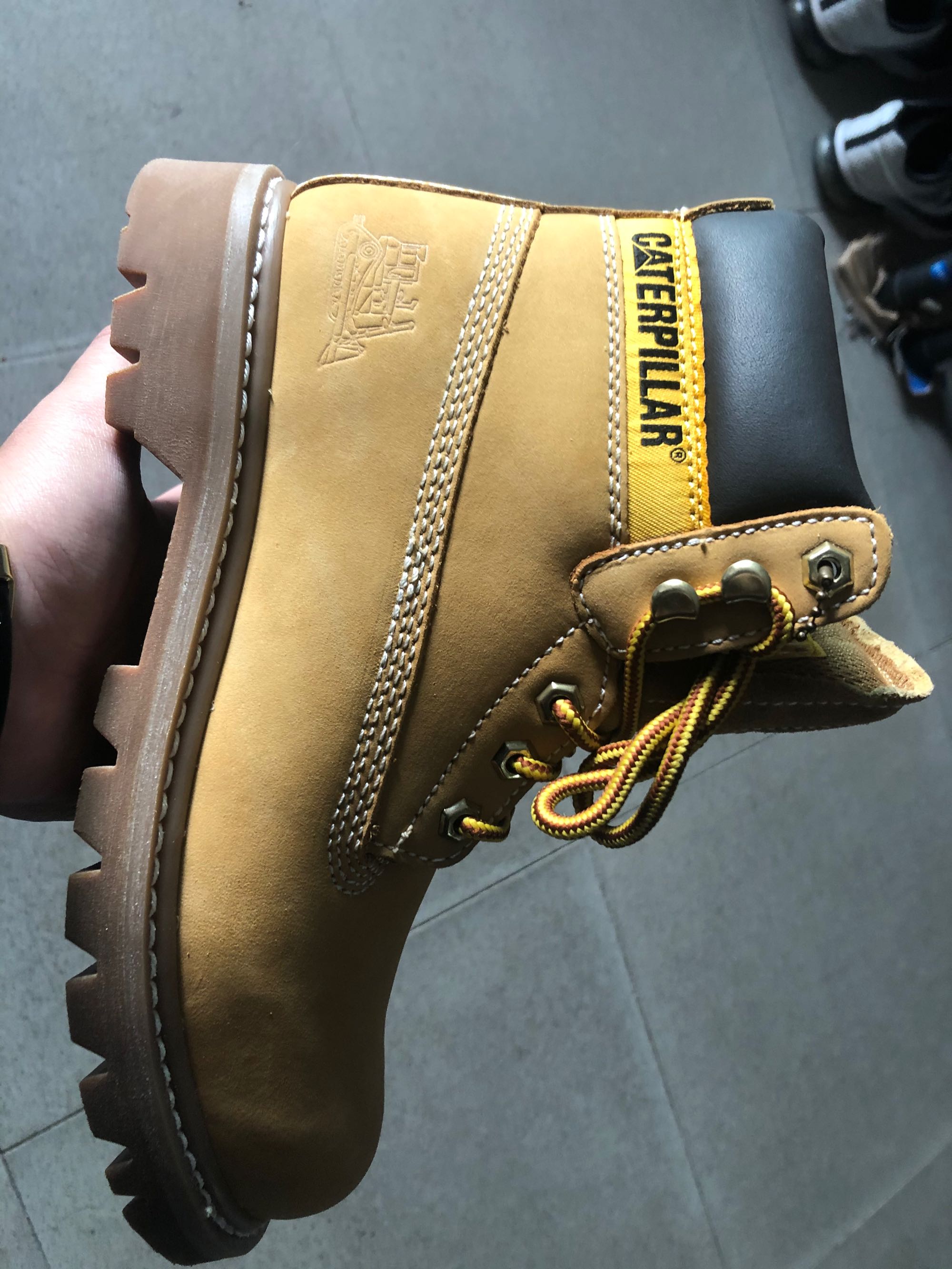代购入手白菜处理价,说不知道什么型号。我拿到鞋子看鞋舌是44100的,但是我在专柜和🐶东上看44100的推土机标志是黑色的,但是这款标志却是这样的。鞋盒上贴纸也没有写哪年哪里生产。请问各位大佬帮忙看看真假,谢谢
