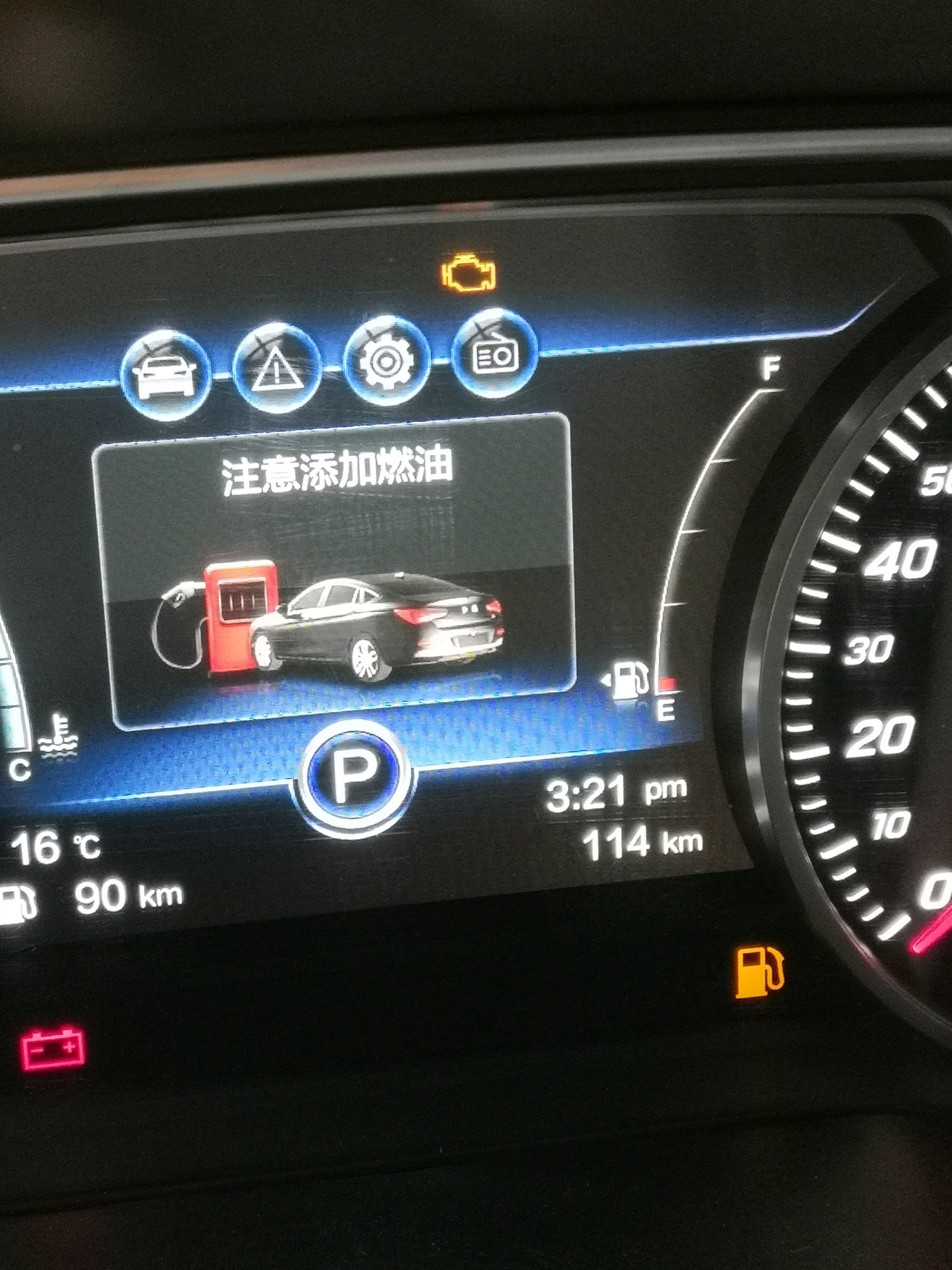 你油箱还能显示红的一点点,我买来完全空的都能开好久
