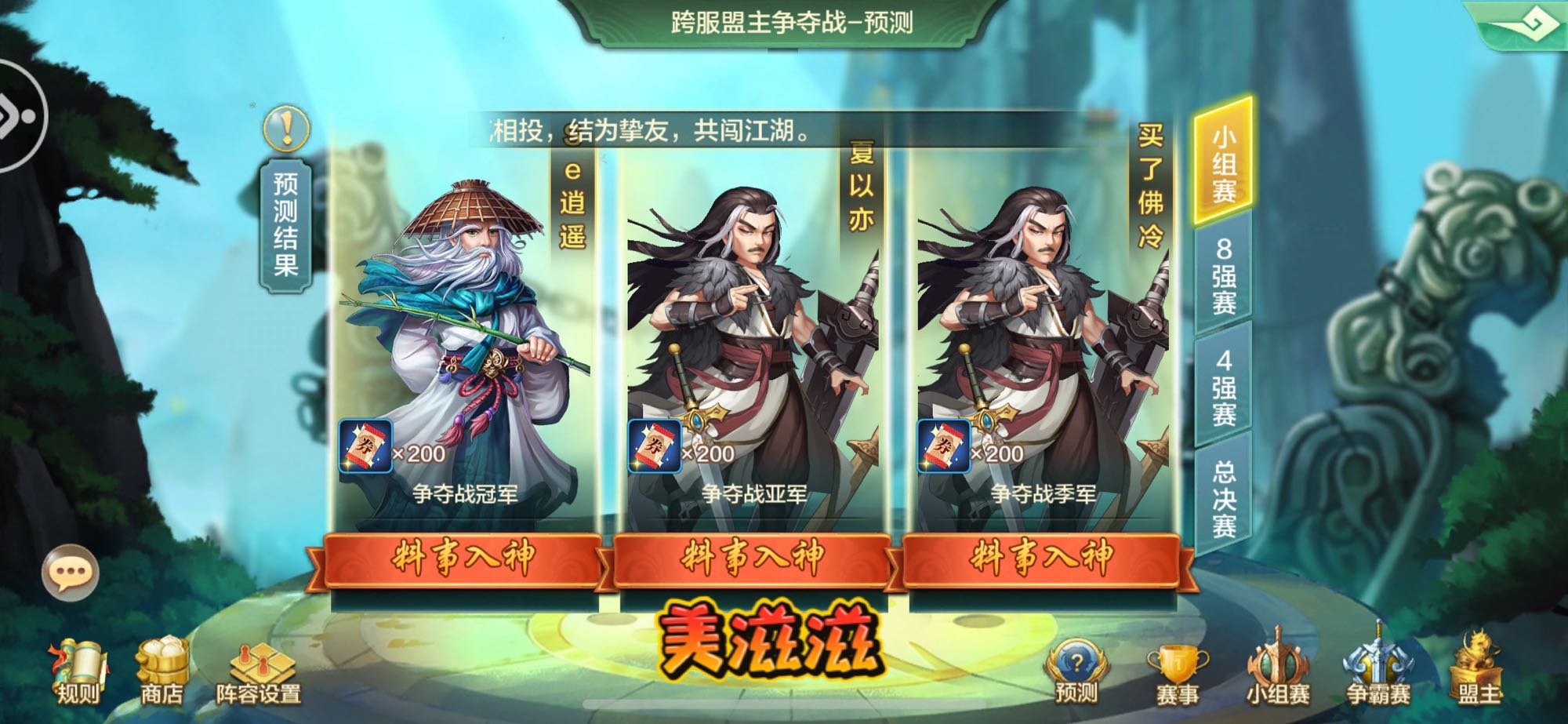 感谢BF,这次拿了一个跨服前三全部猜对了