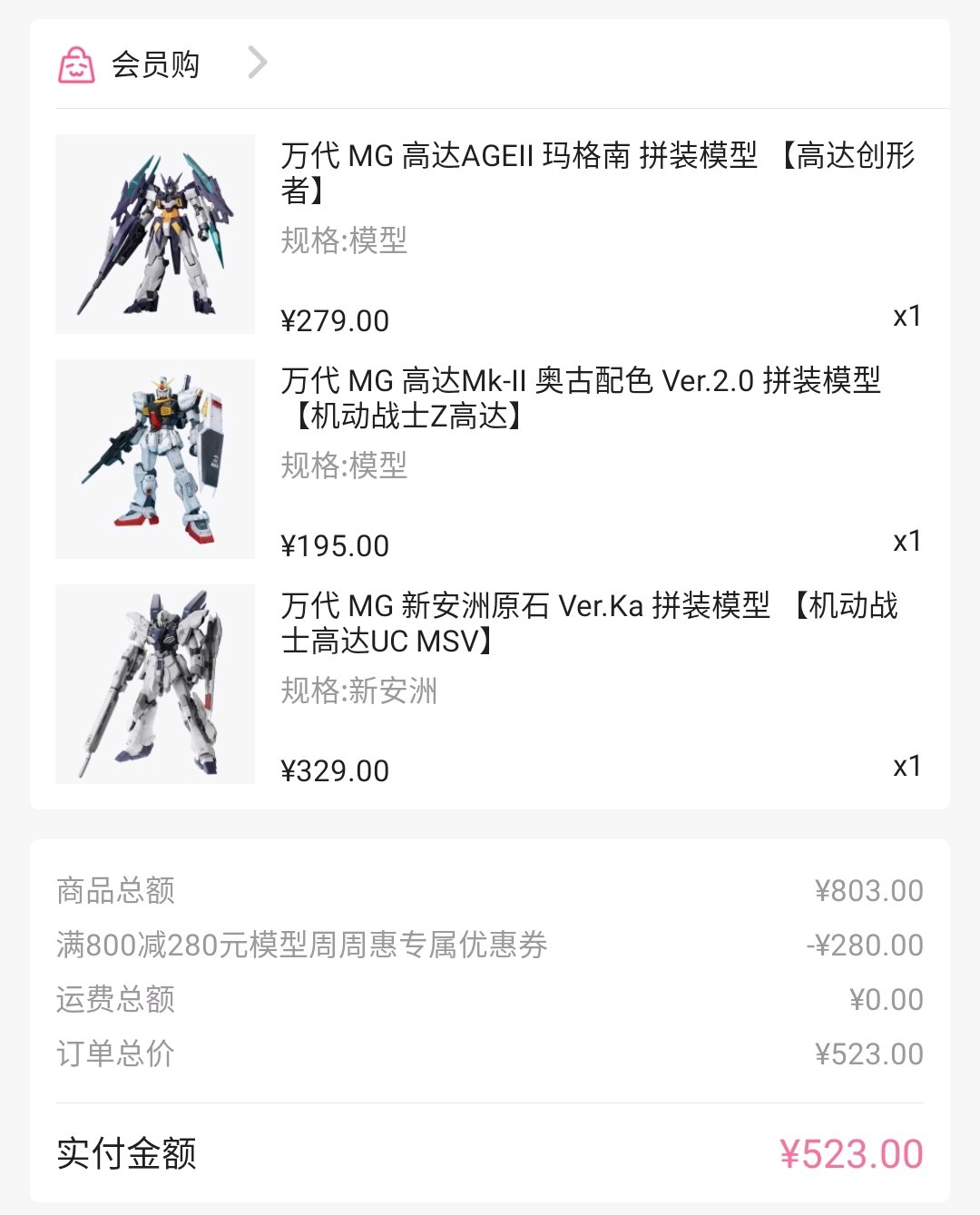 问下,像HG海涅,MG玛格南,不在优惠区里显示的,怎么看是不是可以用800-280的