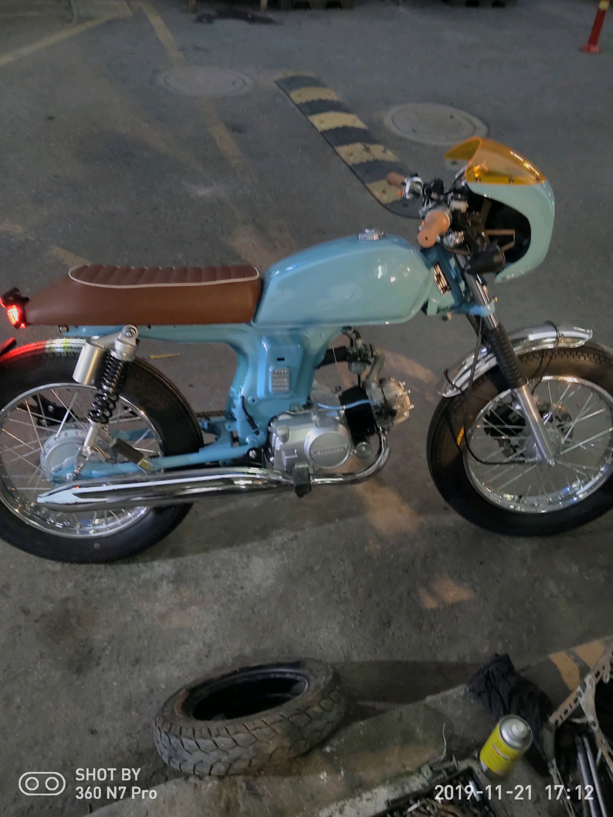 嘉陵MAX,全新嘉陵嘉鵬90JH-2B國三機器改裝,前后川南减震,宗申110CC無極變速發動機,建大4.00-17復古鋸齒胎,磷酸鐵鋰5AH电池,全車LED燈組,12V直流電啟動,靈獸轉向燈,靈獸邊撐,靈獸減震加高碼,靈獸後腳踏,征和油封金鏈,復古魚嘴排氣,CG125后平叉。