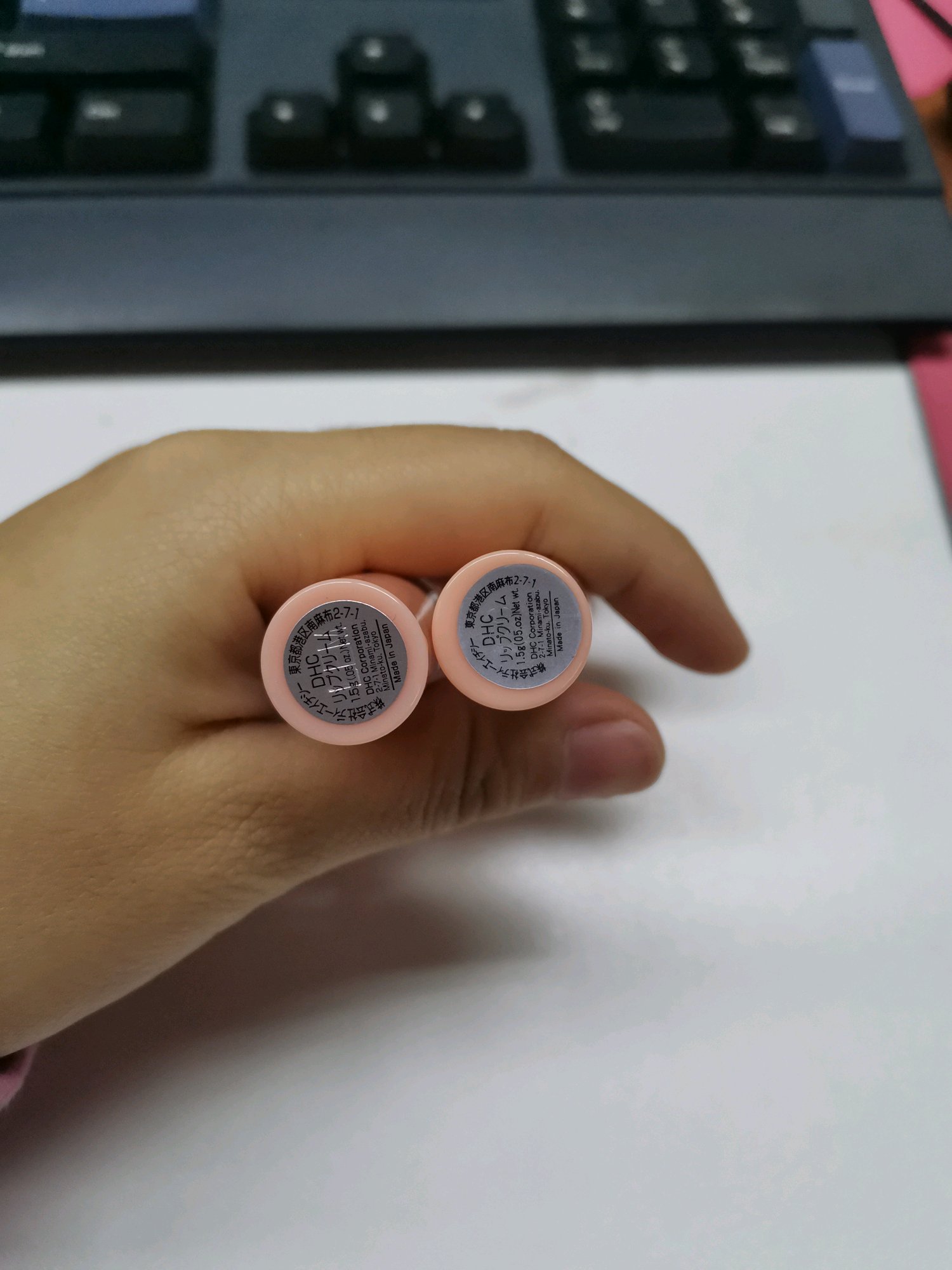 DHC橄榄油唇膏蝶诗翠,大家来看看,这个哪个真哪个假,到底还是两个都是正品,反正它打死不承认。