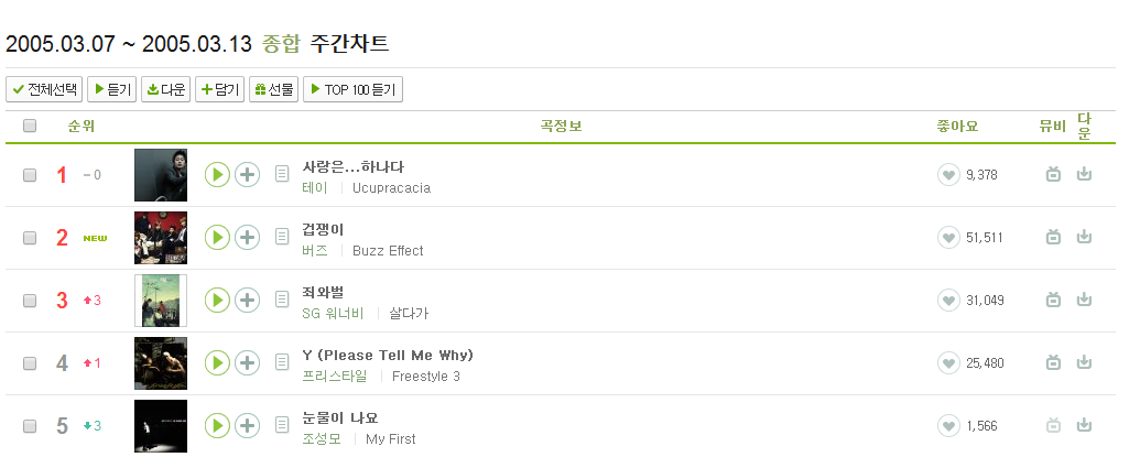 贴一个bugs网站的音源排名,这个网站最早只能查到2006年的记录,所以我看了一下习惯的排名。