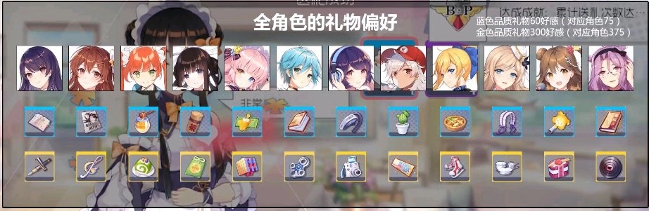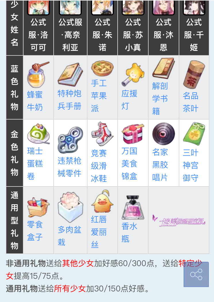 有各个老婆的喜爱物列表么?
