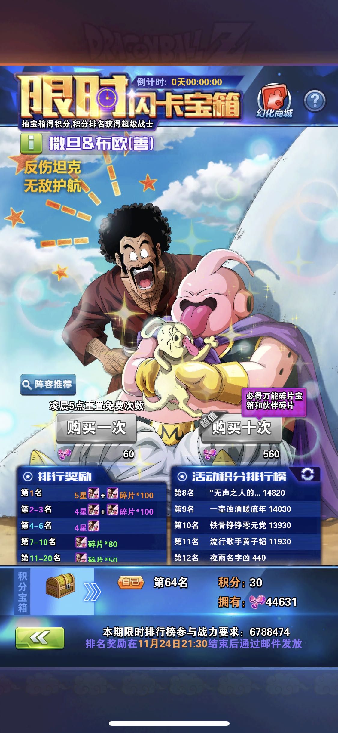 我们区限时战斗力要求要1230w 第一名18000分太恐怖了