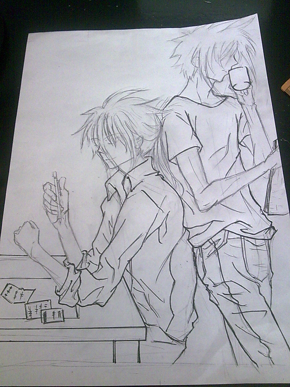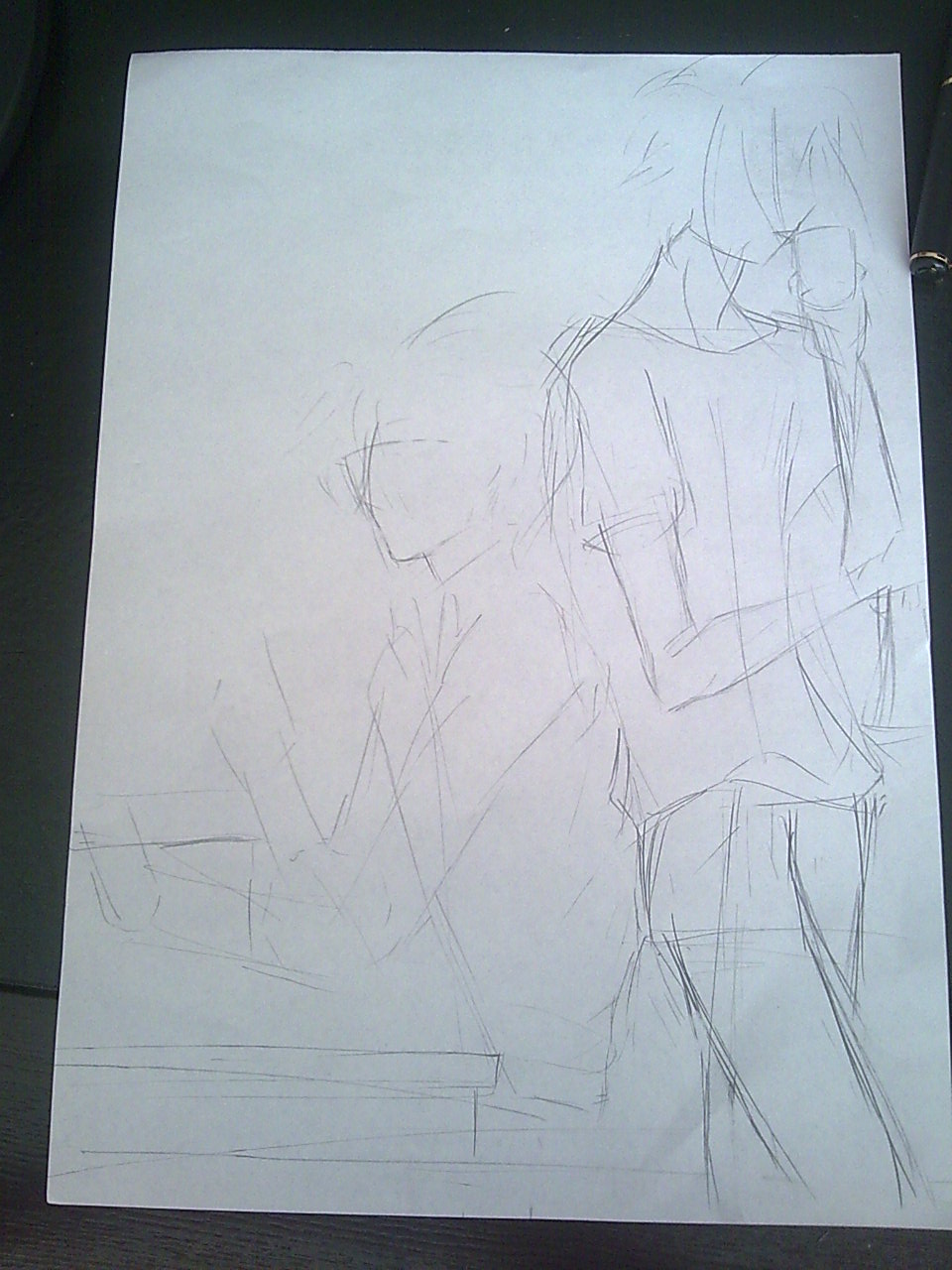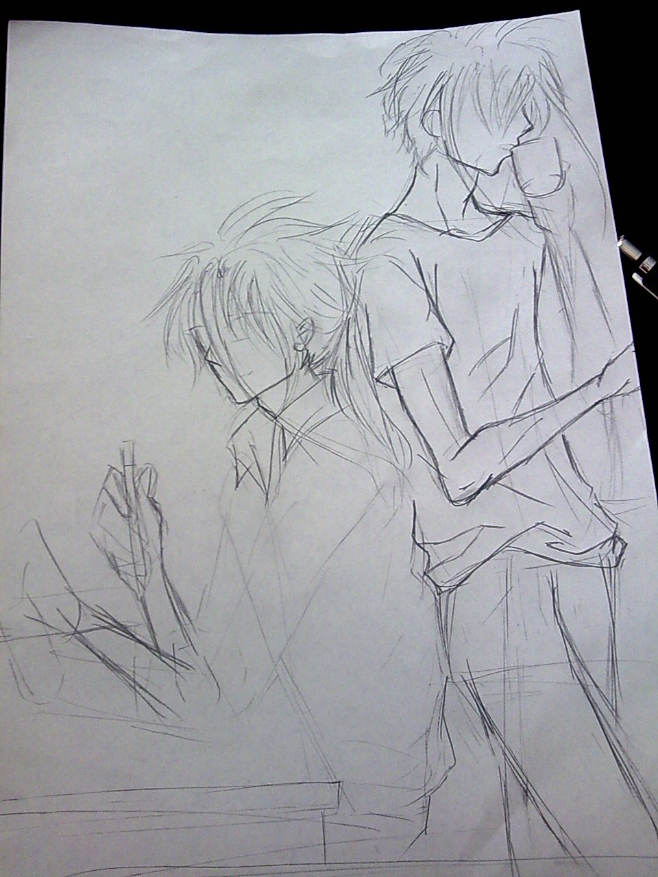 这次稍稍认真了些。衣服用的是樱花的0.8勾线笔,手臂脖子用的是0.5的,然后头发是用0.3的+水笔。