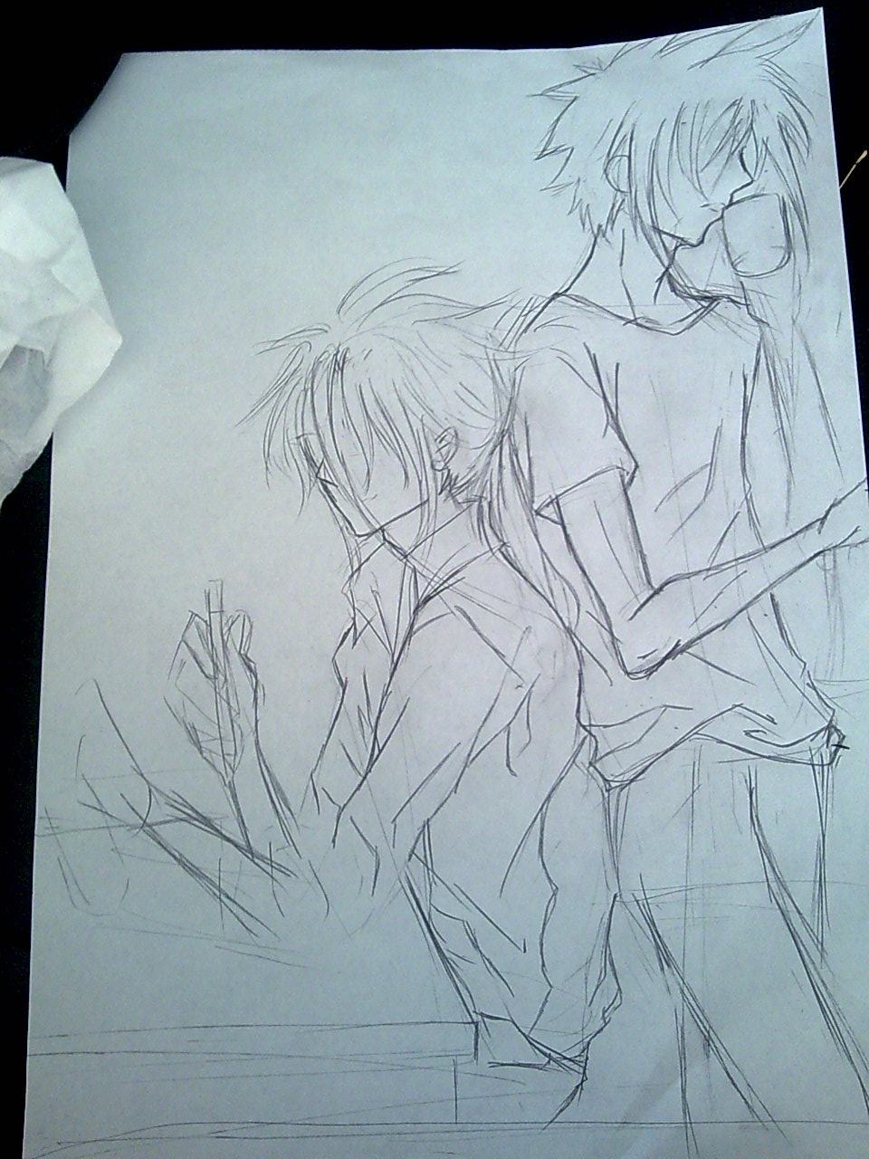 全部处理完之后,把铅笔草稿擦掉,虽然头发就没之前那么根根分明,但是整个画面清爽很多~~