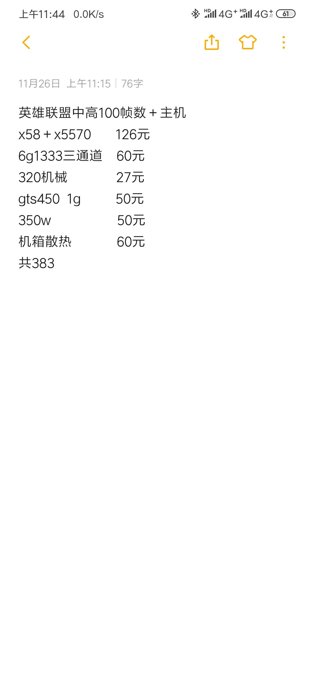 内存和硬盘都是全新的价格,二手的话还可以缩水一下价格