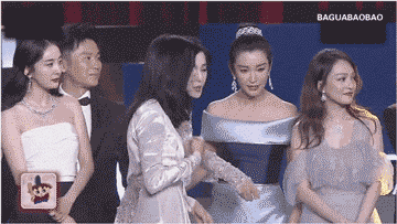 看样子范冰冰杨幂把姚晨往中间推,姚晨谦让了一下