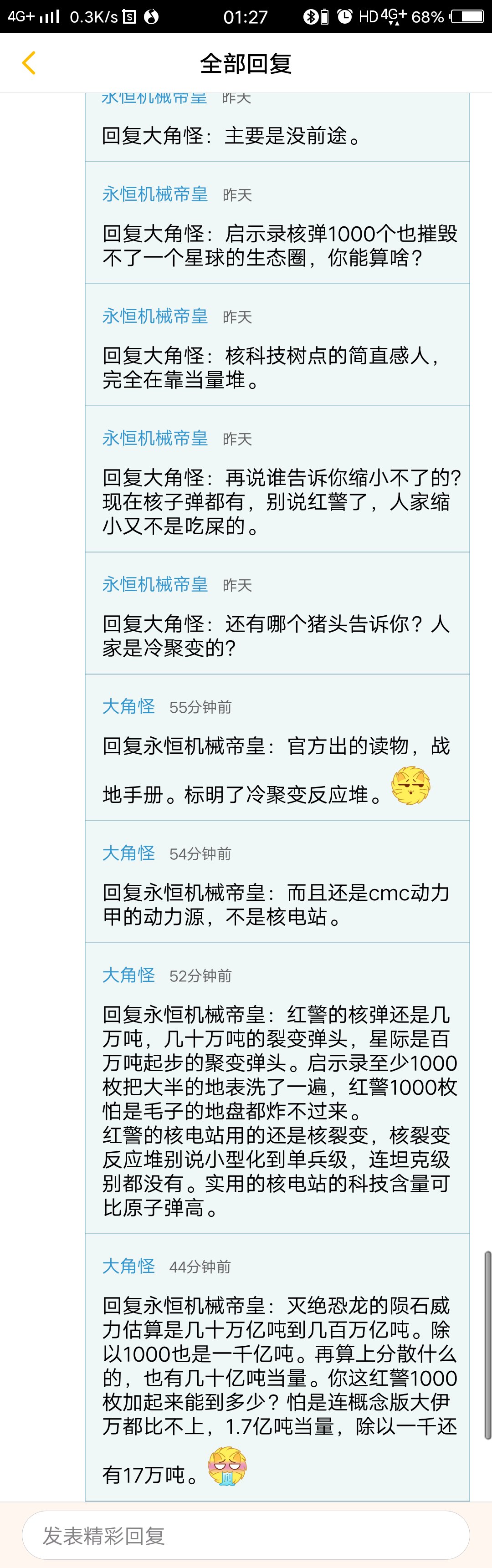转述官方设定(cmc动力甲的冷聚变反应堆),他就说猪告诉你的?也是服气。