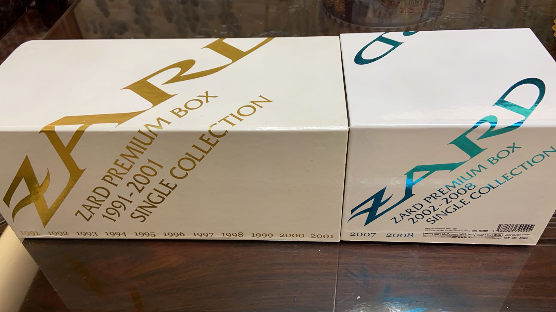应为蓝盒子是在白盒子以后出的蓝盒子首先是在版的先不说了就是里面的单曲还有就是碟的调音和白盒子里面的1991到2002年的不同白盒子的里面也就是1991到2002年的单曲大部分都是首版的单曲也就是姐姐当年在录音棚第一次发行时候的声音