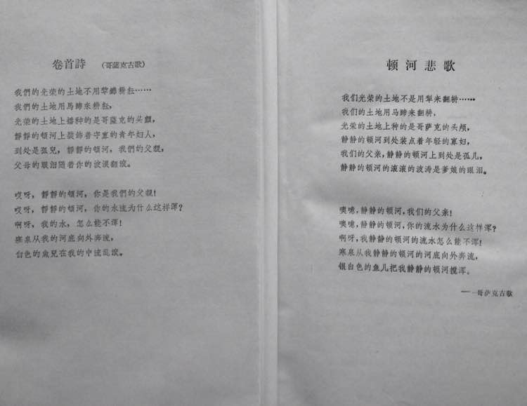 左为金人版:88年第2版之前的版本和近期的翻译家译丛精装本(卷首诗是金人旧版,内容是贾刚修订版),右为贾刚修订:88年第2版之后的版本,包括88年第2版、名著名译插图、名著文库、萧洛霍夫文集。