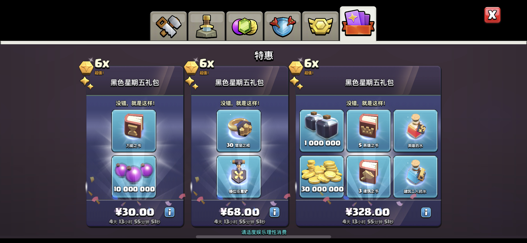 让游戏有个美好的未来的你 会秒掉部落冲突的所有礼包 因为非常便宜,黑五礼包也不列外。