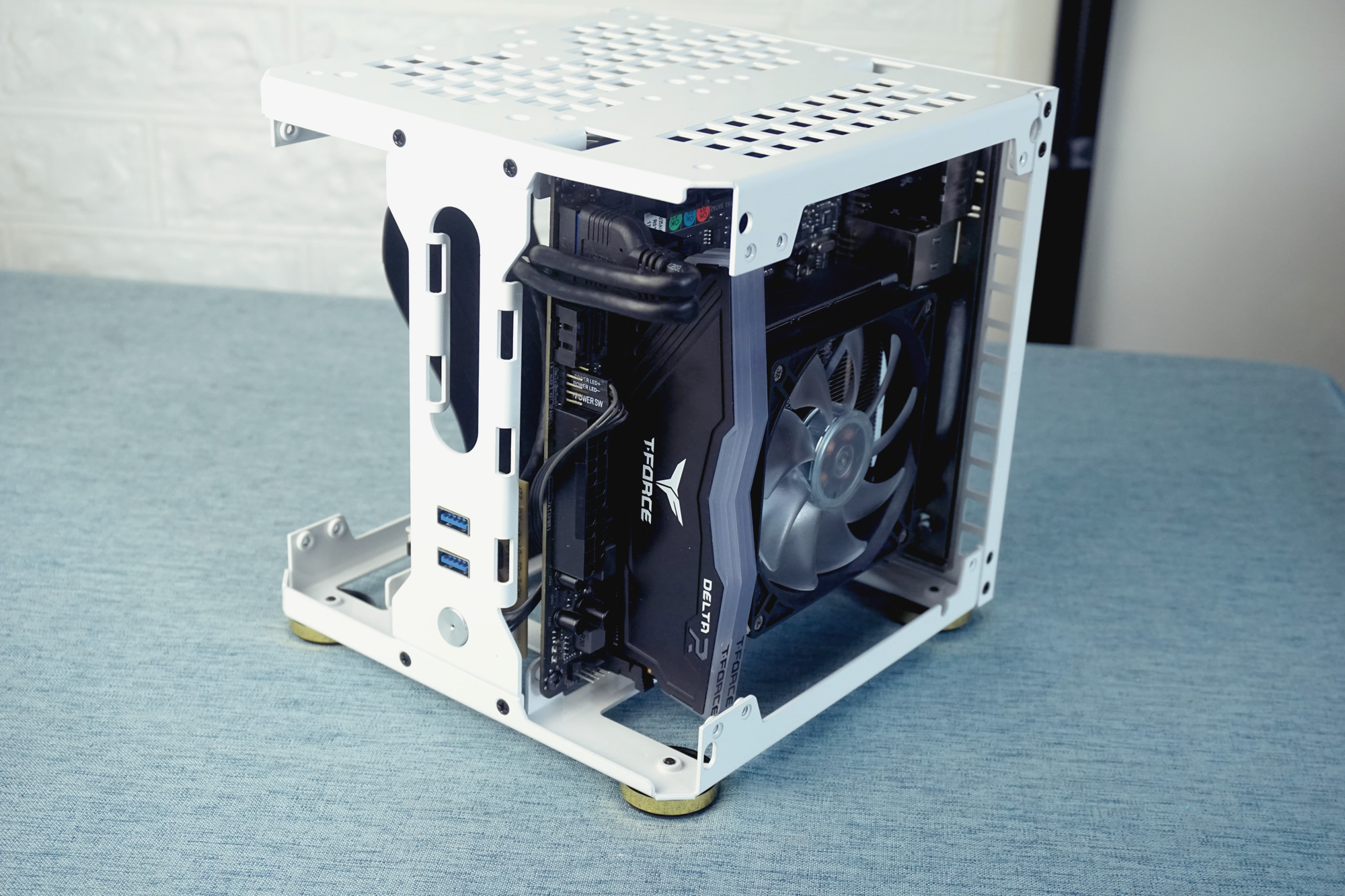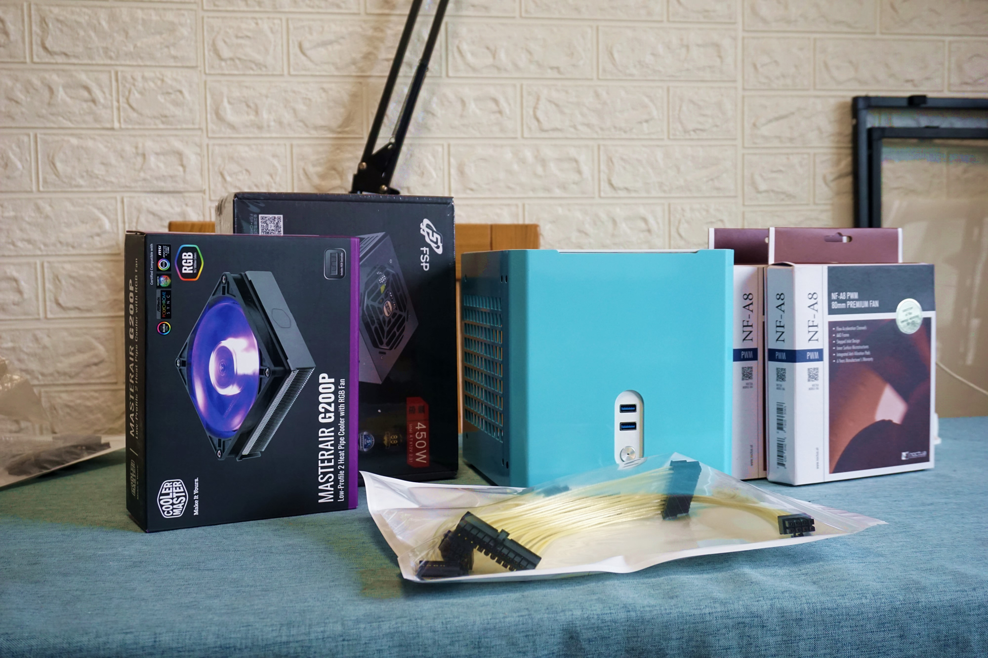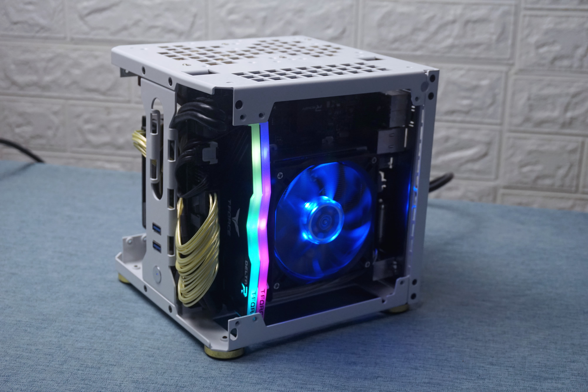 硬件合照小机箱,除了便携之外,更多的是放在桌面上,美观大方,不占用桌面空间,因此我设计了新款MC18,不同于市面同类机箱,造型色彩都比较单一,特意设计成了一个小立方体;新的机箱样品已经到手,经过2版样品改进修正,基本成型,因此也就有了此次的装机此次装机主要是旧硬件的搬运,同时也顺带买了个最新款的G200P rgb散热器,2个猫头鹰A8扇子,顺带提升下原来1700机器的朴素单调,让办公更惬意点。