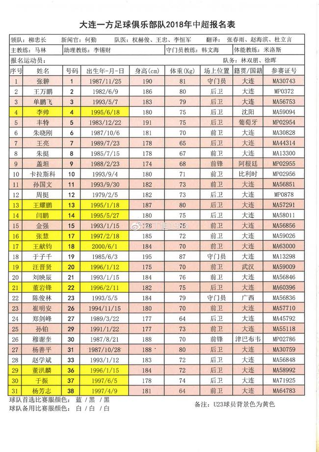 31 王耀鹏 31 1995/1/18 182 80 后卫 大连