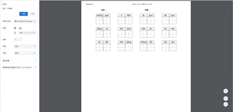其实主要是给老师在学校打印了。发给孩子直接默写用的