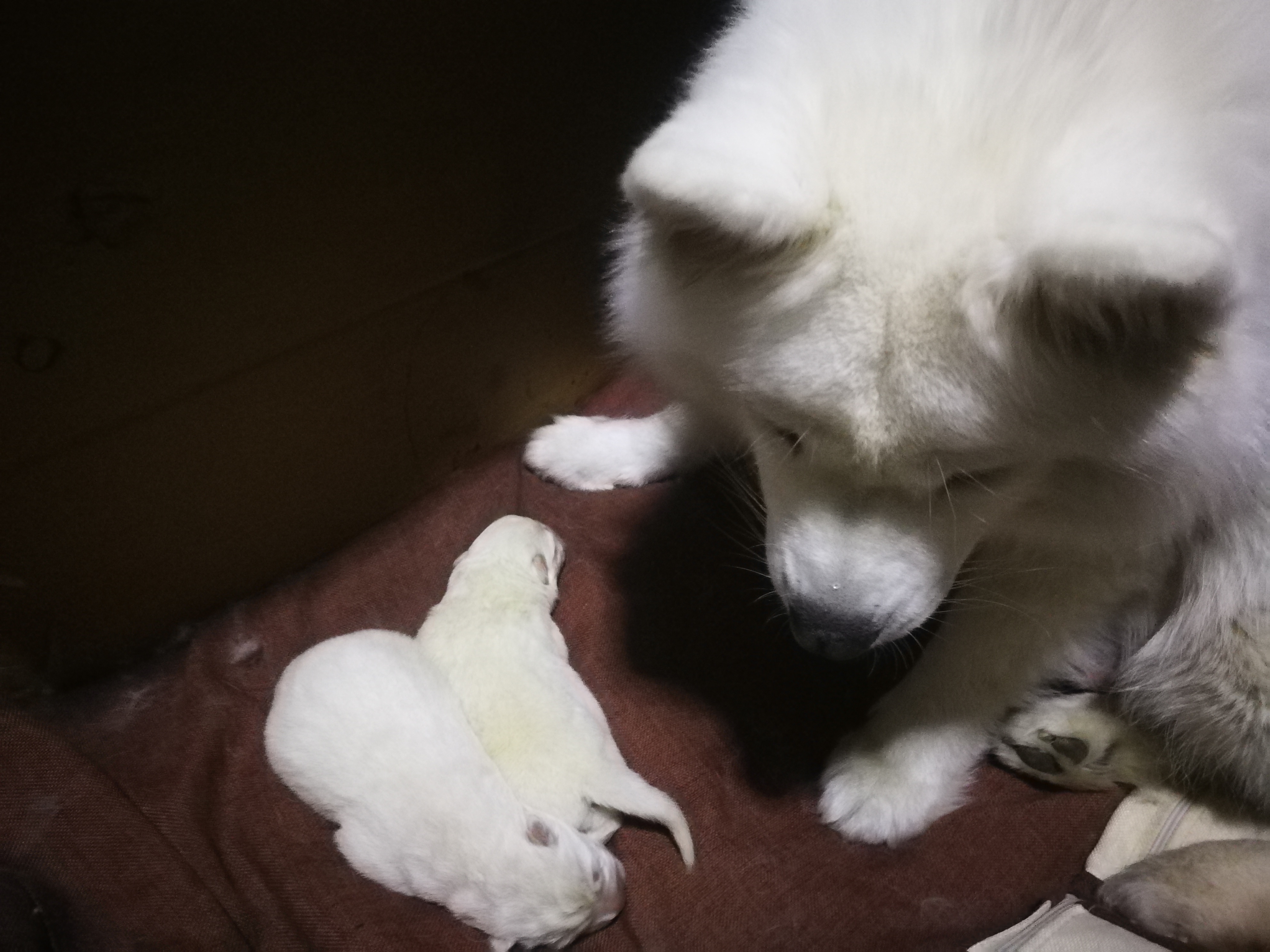准备好几块家里不用的床单之类的,洗干净,晒好后备着。如果家里有狗窝,就提前把床单铺上去,不然等生产的时候,各种液体,窝也算是基本废了。 在生前几个小时,母狗会很急躁的走来走去,小狗生下来后母狗如果没有第一时间舔破粘膜,咬断脐带,就要饲主自己用两个手指