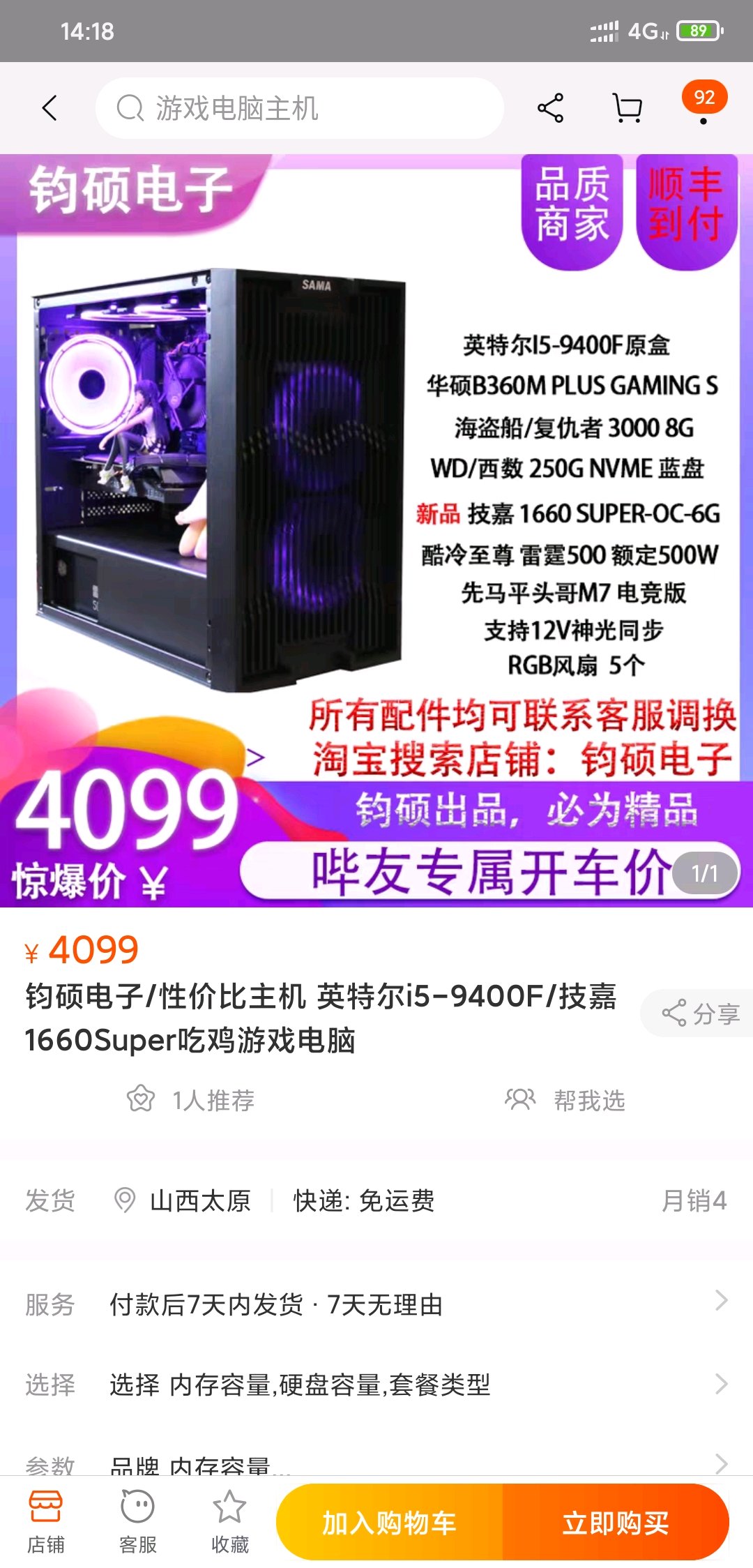 i5 9400f 玄冰400 微星b365m-pro 威刚2666 8gx2 三星pm981 256g 微星1660 6g 万图师 全汉450w 铜牌 玩嘉元素 总价4120