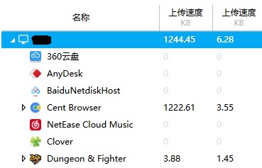 边玩游戏边看直播,只需预留200kb/s给游戏就行,最下面那个是游戏程序。(左边那个速度是下载速度,国外的软件NetLimiter,汉化不完全,)