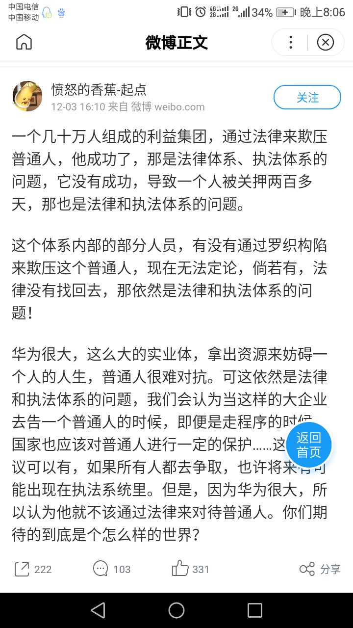 中间疑问很大,首先如果不预设立场,看待这件事,这件事是一件很普通的司法案件。但是加上了华为这个前缀,所以变大了。而且,在法律框架内,是没有错的。