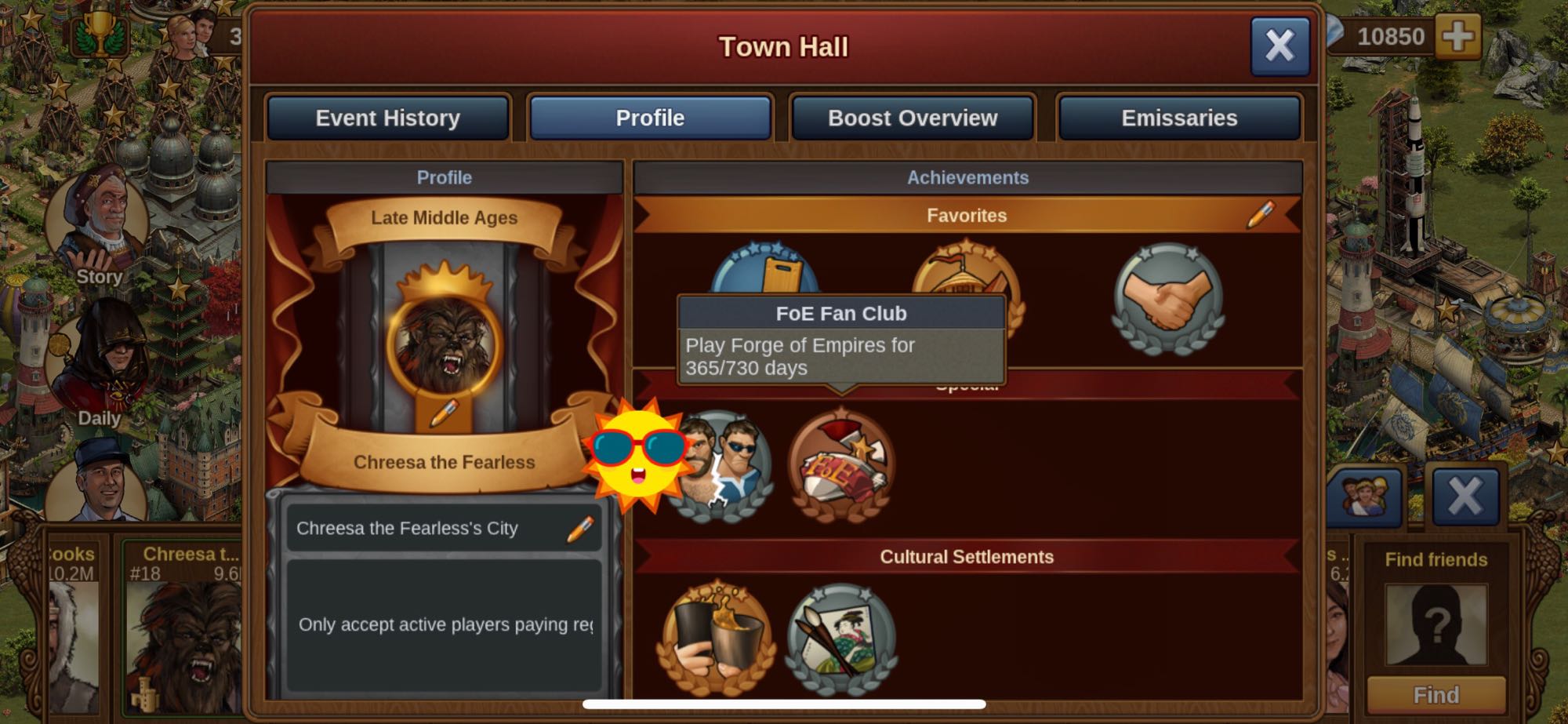 心血来潮打开成就面板发现今天是我玩FOE一周年纪念日