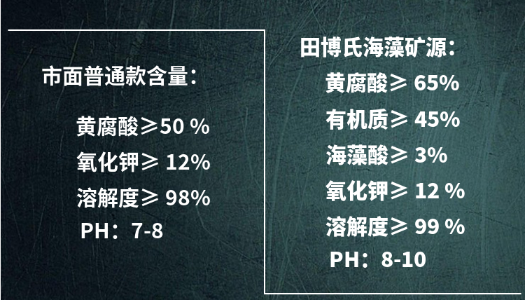 常规的矿源黄腐酸钾是:黄腐酸:50-65%、有机质70-85%、氧化钾12% 这才是正常的含量范围