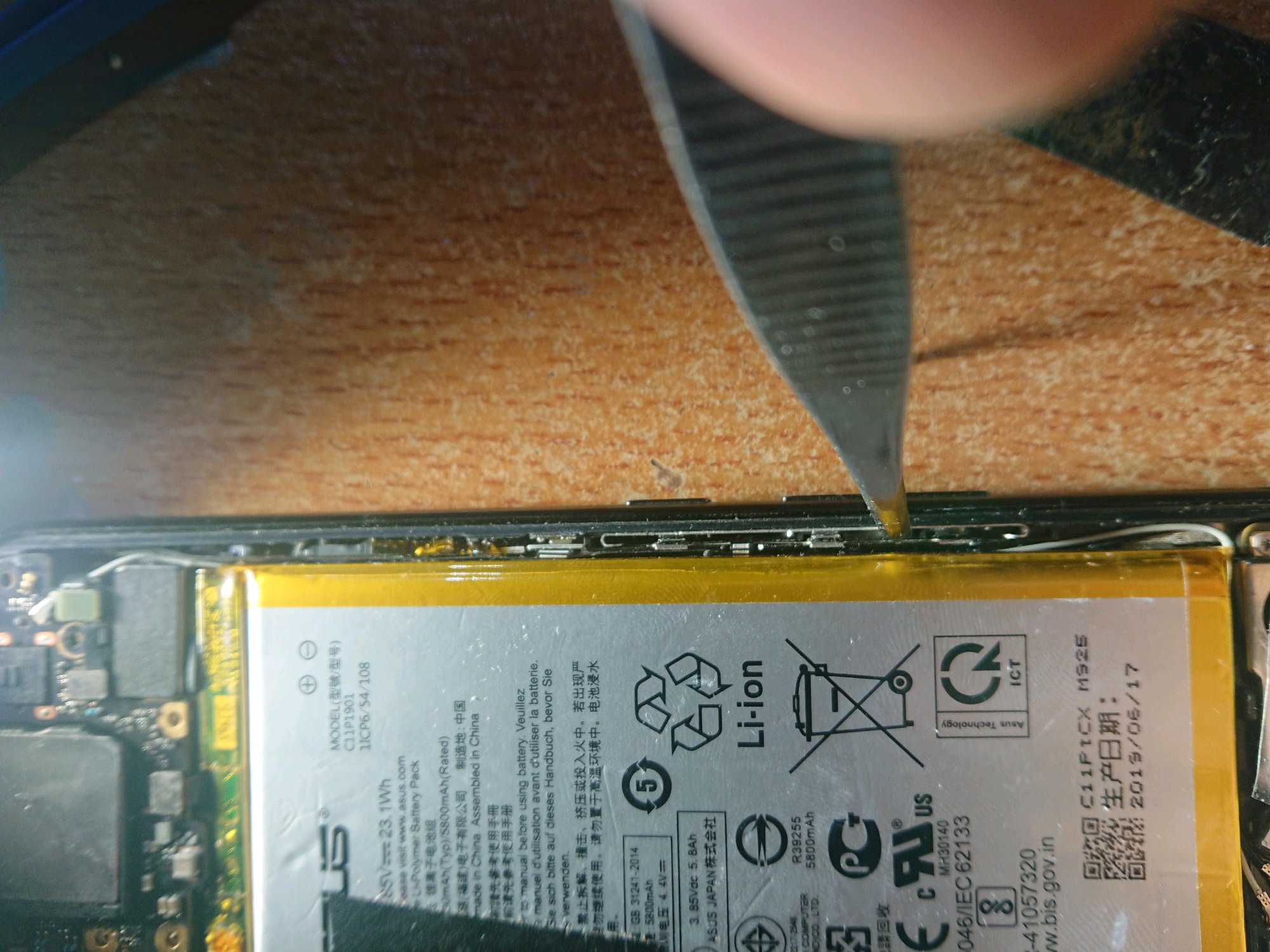 。然后把音量键的那块铝板往电池那边撬了下,音量键手感就好了