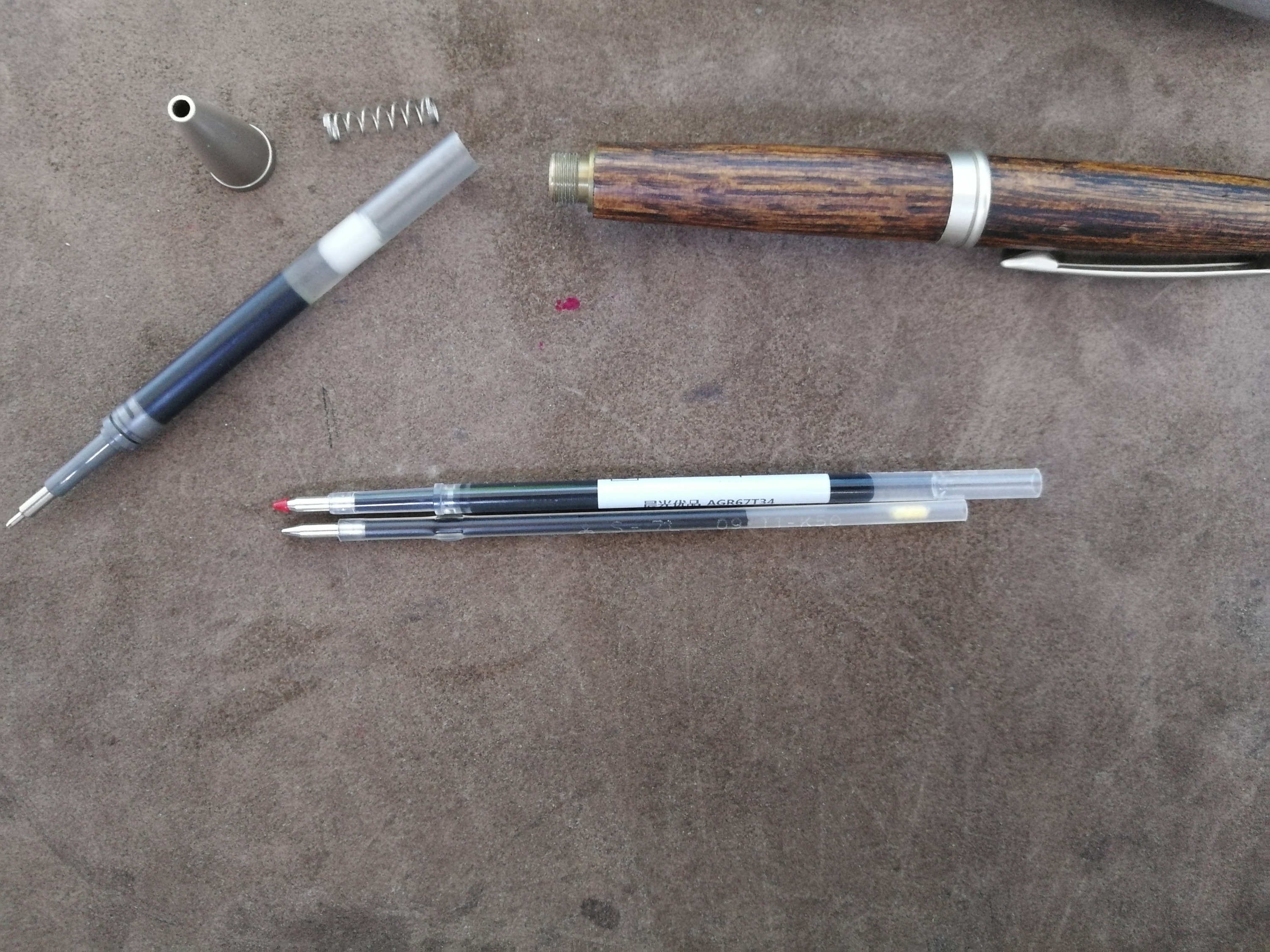 上图是标配圆珠笔芯、改造后适配的2004、还有适配Dr.grip中性规格的LRN5。