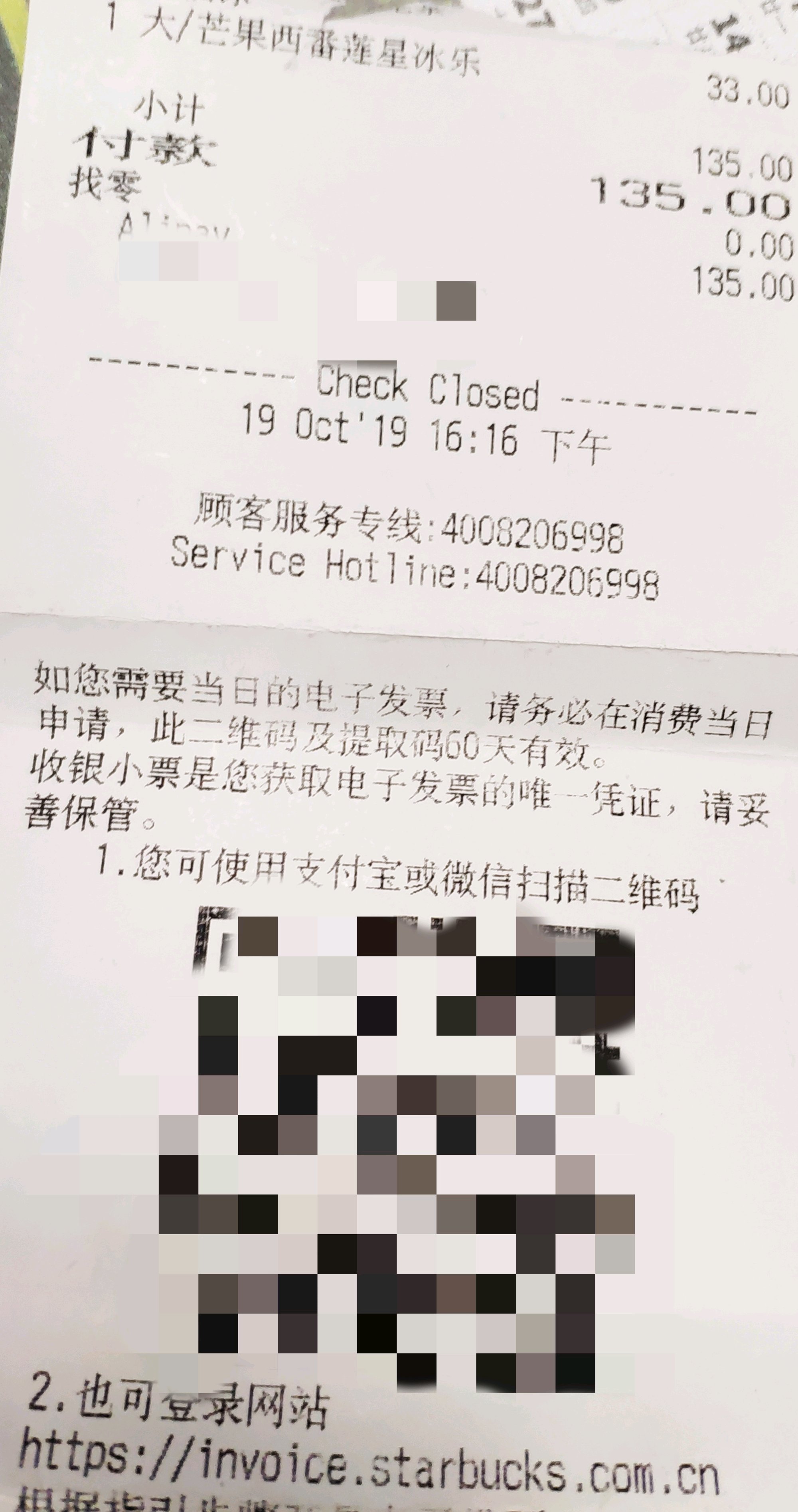 星巴克开票确实不快