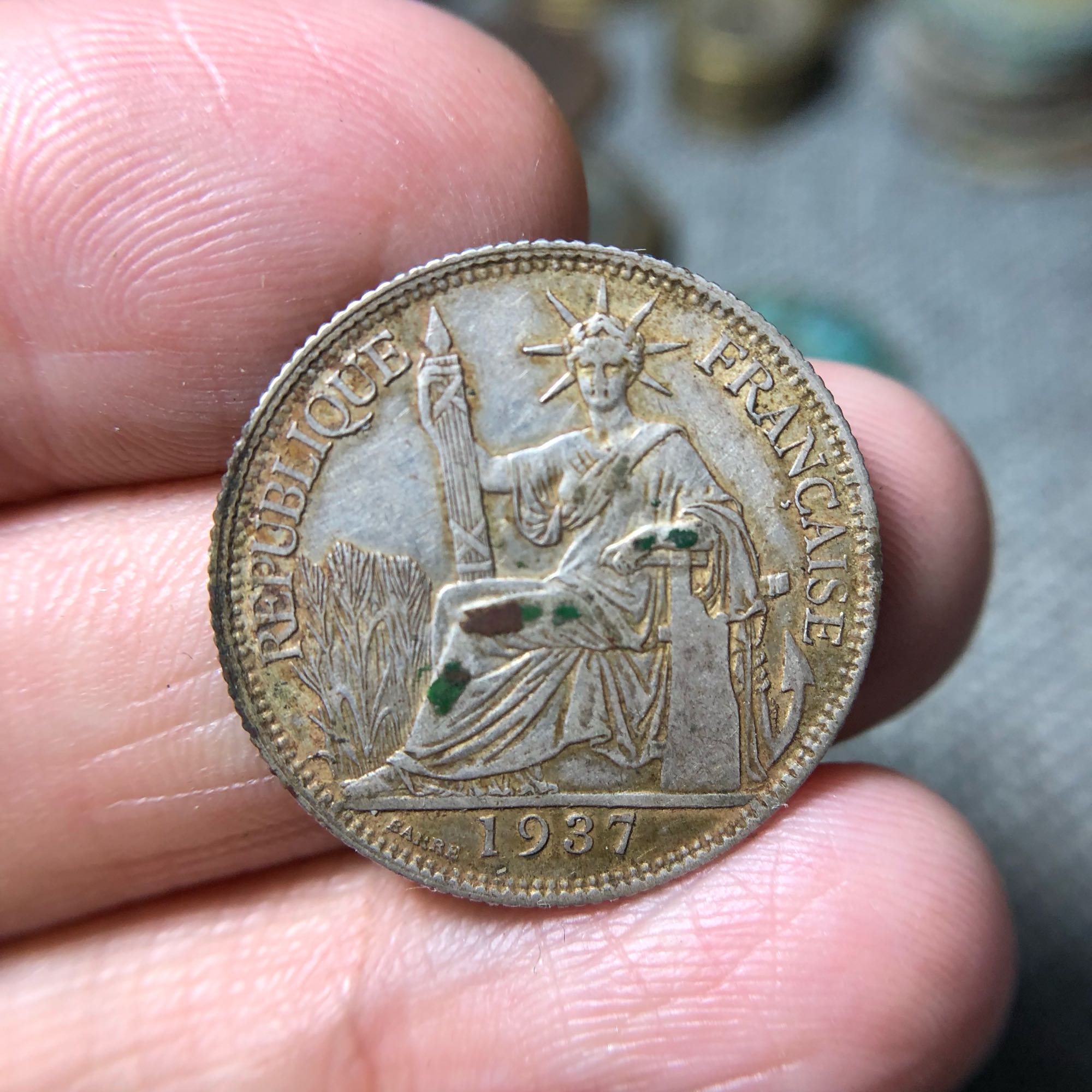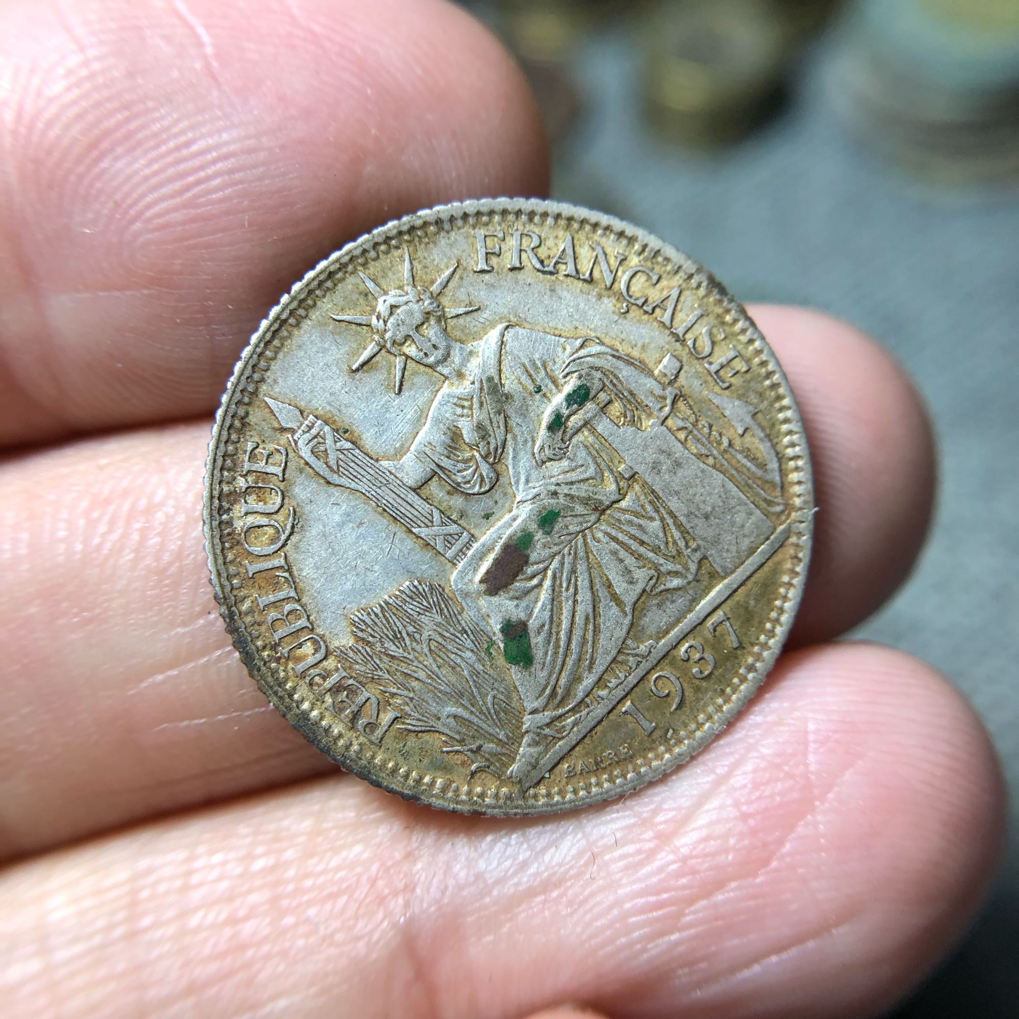 小银币,二十豪的,包浆好状态好,中间绿色是放钱币册里时间久粘出的包浆锈,65包邮