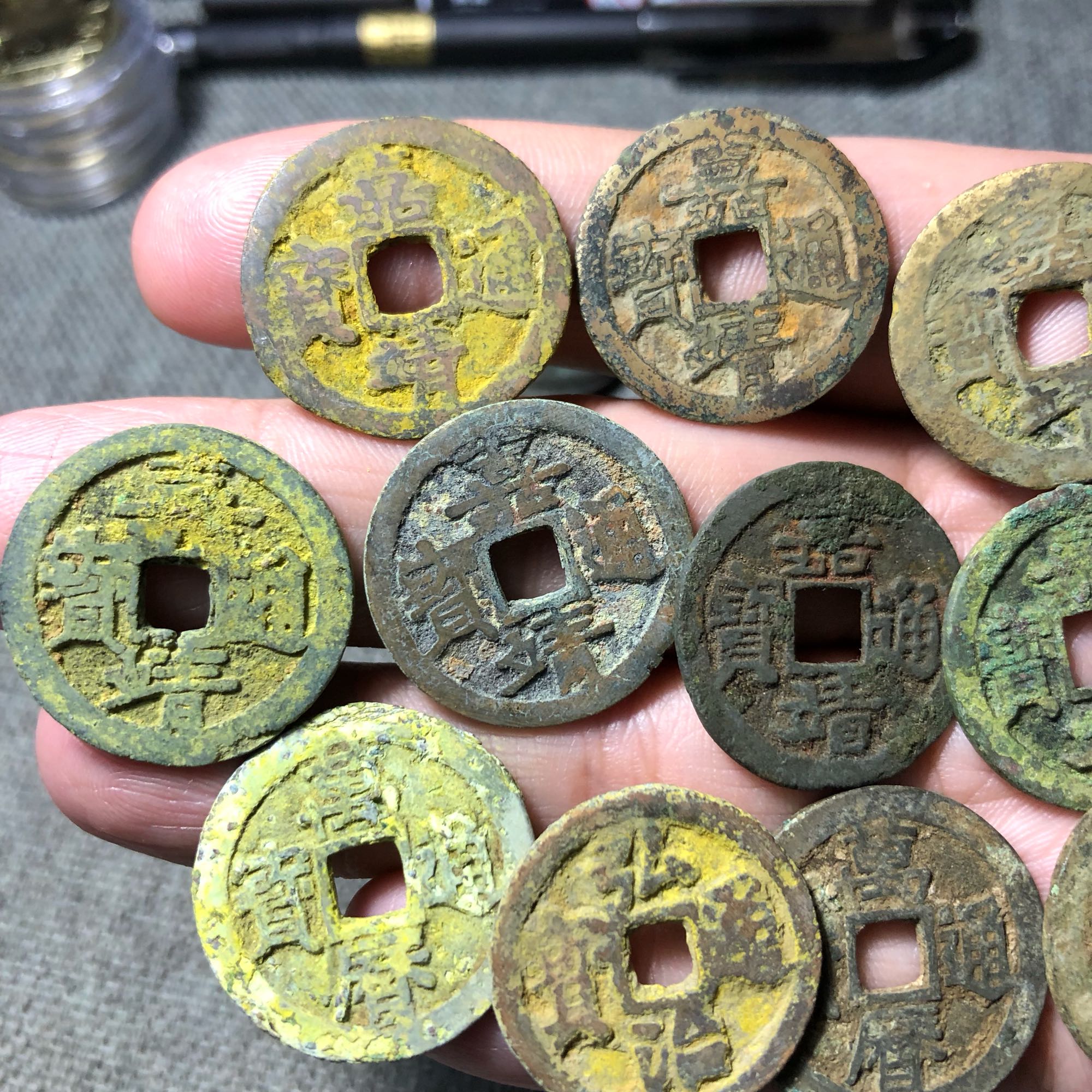 烧蓝花钱,状态还不错,33.5×1,200包邮