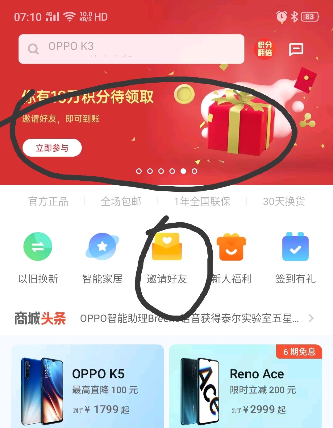 1、OPPO各APP内签到