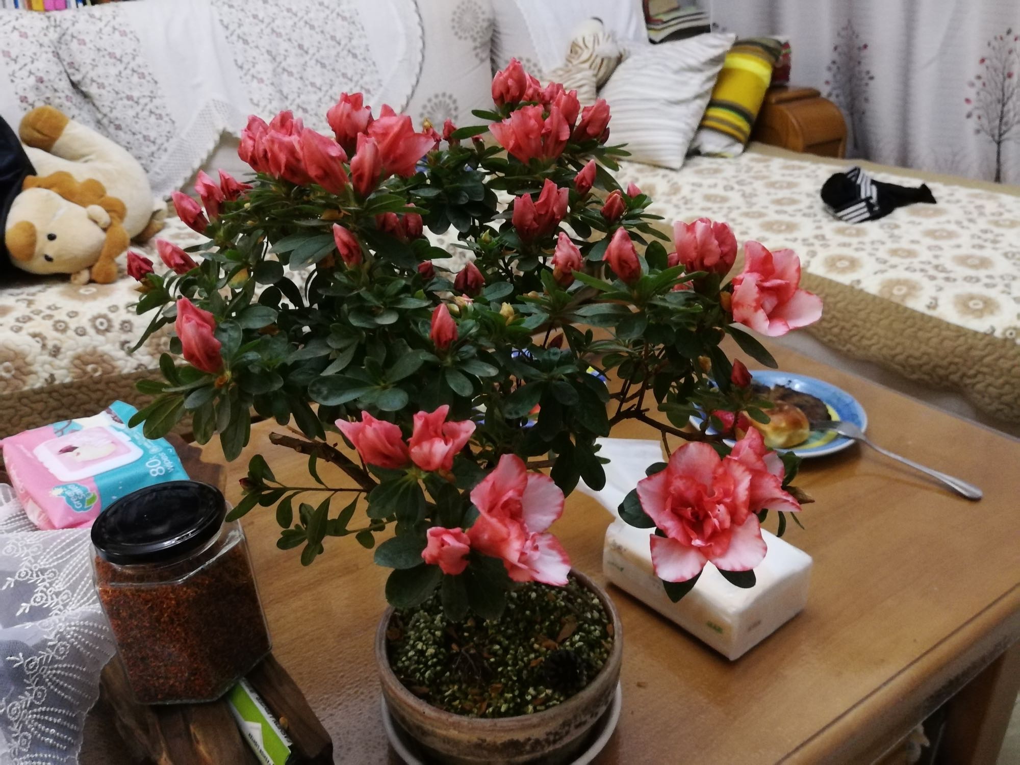 跟着他们的帖子学会了洗根修根换盆,由于是纯鹿沼土,所以浇水基本没什么压力。买了酸性花肥、玉肥、花多多1号2号和磷酸二氢钾,基本半个月施一次,也经常忘。