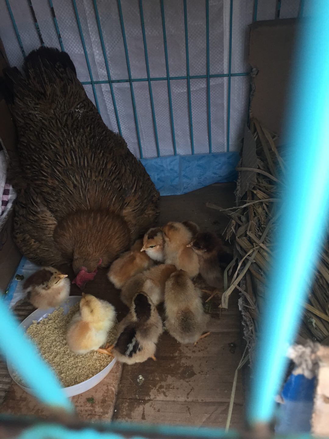 第一次见抱窝鸡,然后还是第一窝就抱窝了,不敢放太多蛋
