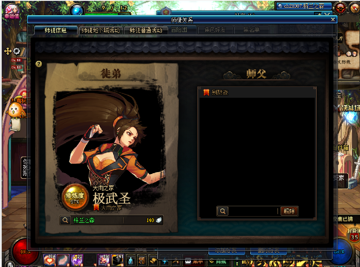加了徒弟, 他自个去打普雷打其他本了, 他说他本来就是想白嫖一下徒弟奖励的, 任务也不和我做, 发信息后来也不回....好在修炼度还在慢慢涨