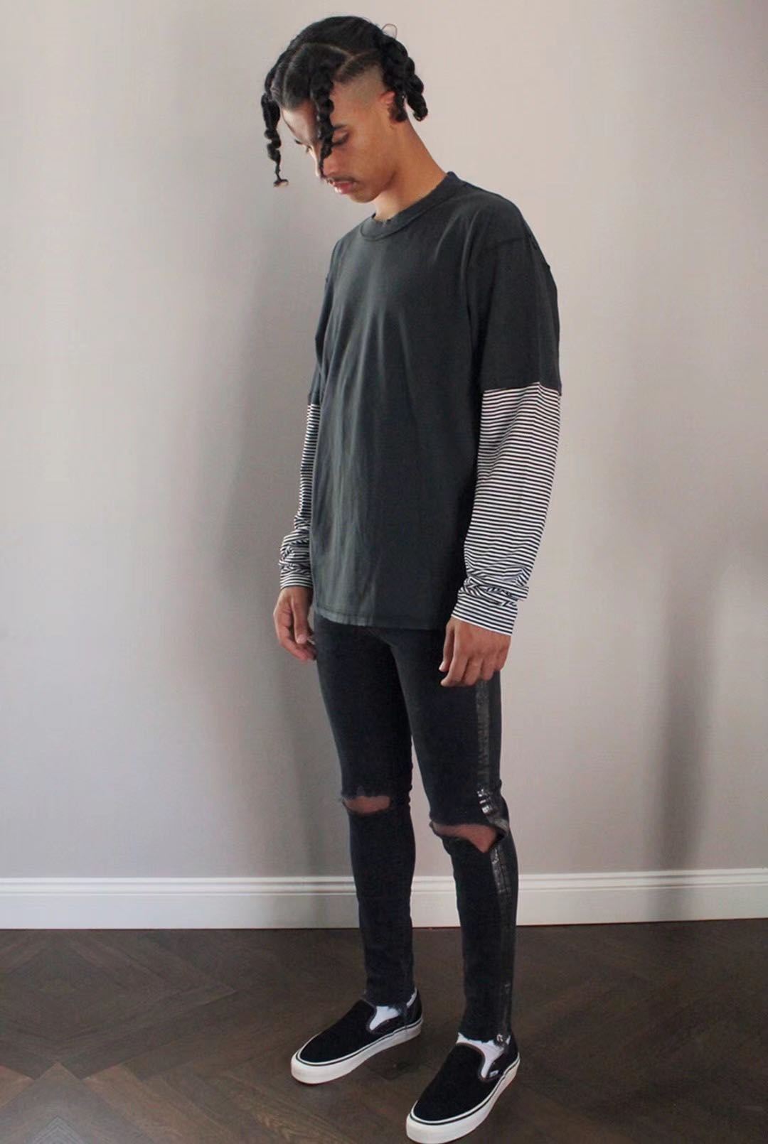 Askyurself Verse 3 * 手绘条纹水洗黑牛
