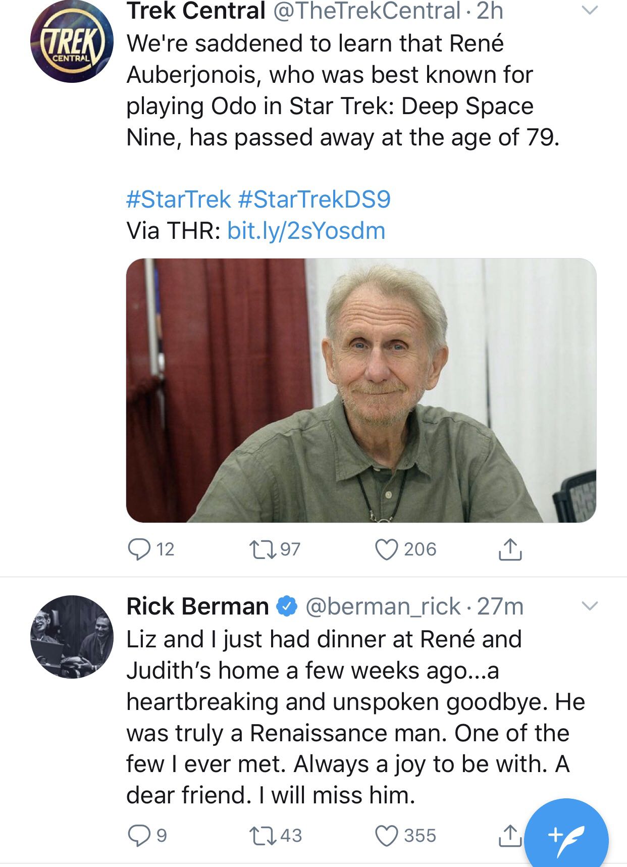 Odo的演员Rene去世了,79岁,RIP